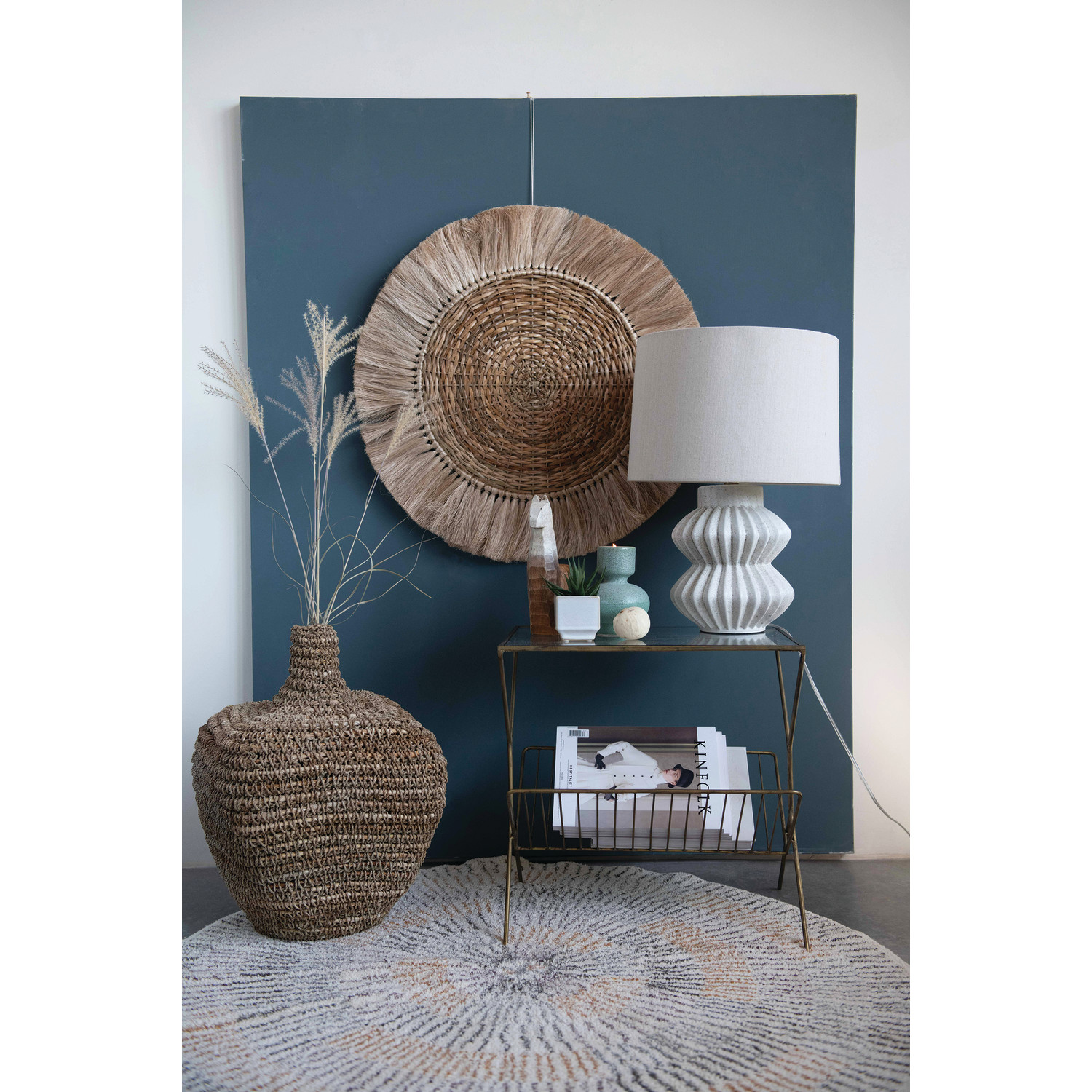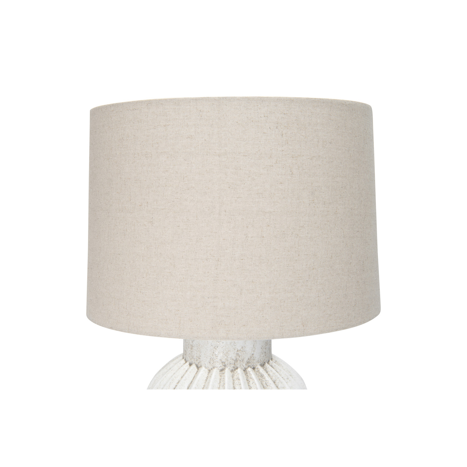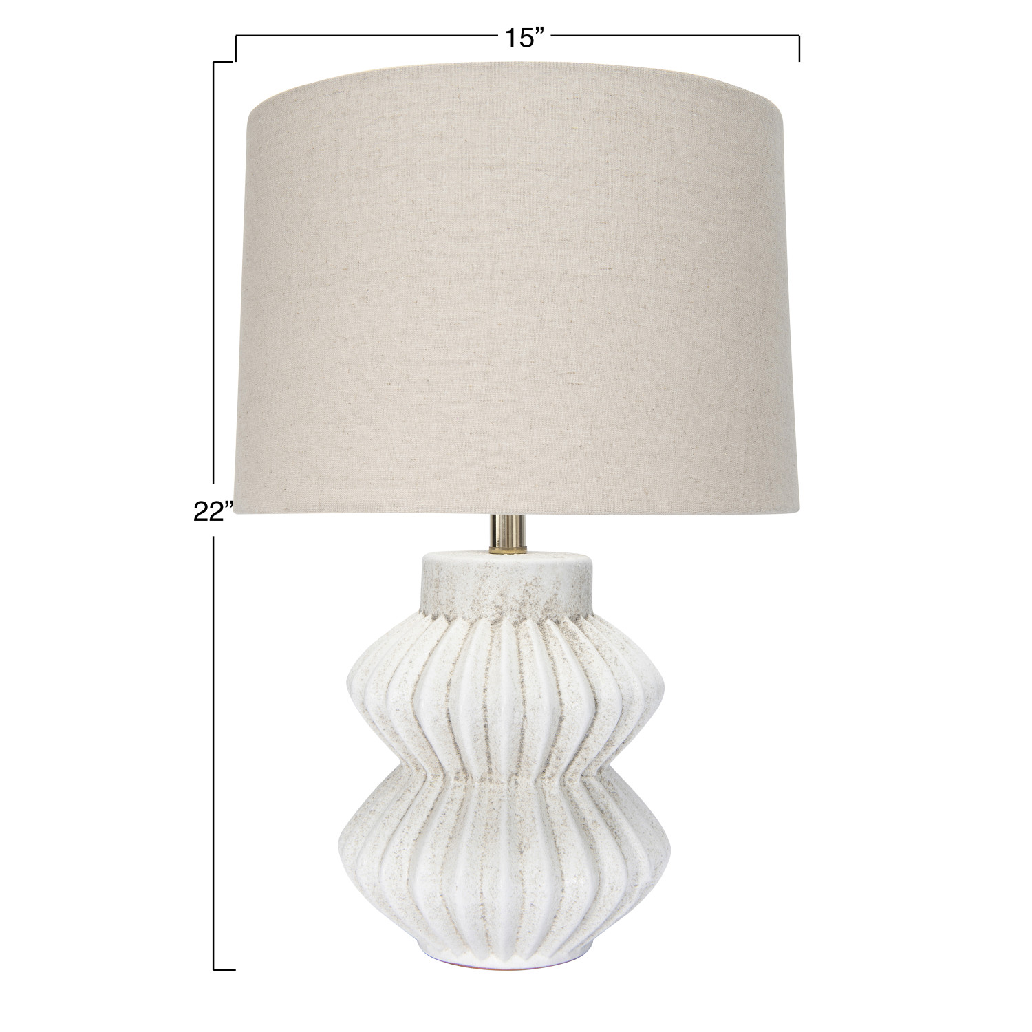Your customers can add some style and personality to any space with this distressed white fluted terracotta table lamp that showcases a geometric, fluted terracotta base in a distressed white finish, topped with a white linen shade. It features a terracotta base that has a round shape and a fluted design that creates a beautiful texture and contrast. The distressed white finish adds a touch of vintage and cozy charm to the lamp, while the white linen shade creates a cozy and inviting light that complements the terracotta base. The shade is made of linen, which is a natural and durable fabric. This table lamp is suitable for any room that needs some texture and character, such as the living room, bedroom, office, or any other area. It can also be a great gift for anyone who loves farmhouse, cottage, or vintage design. This table lamp requires one 150-watt bulb (not included) and is equipped with a rotary switch on the base for easy on and off. It measures 15 inches round x 22 inches tall, and the cord length is 7.5 feet. Add this distressed white fluted terracotta table lamp to the home and enjoy its beauty and functionality.