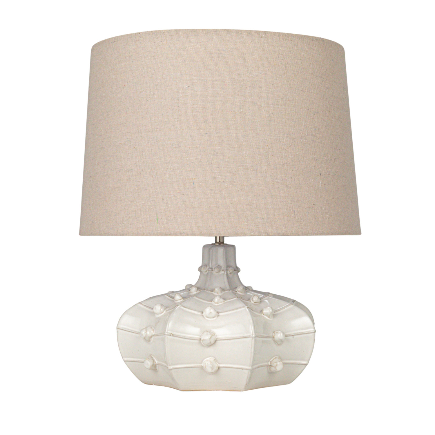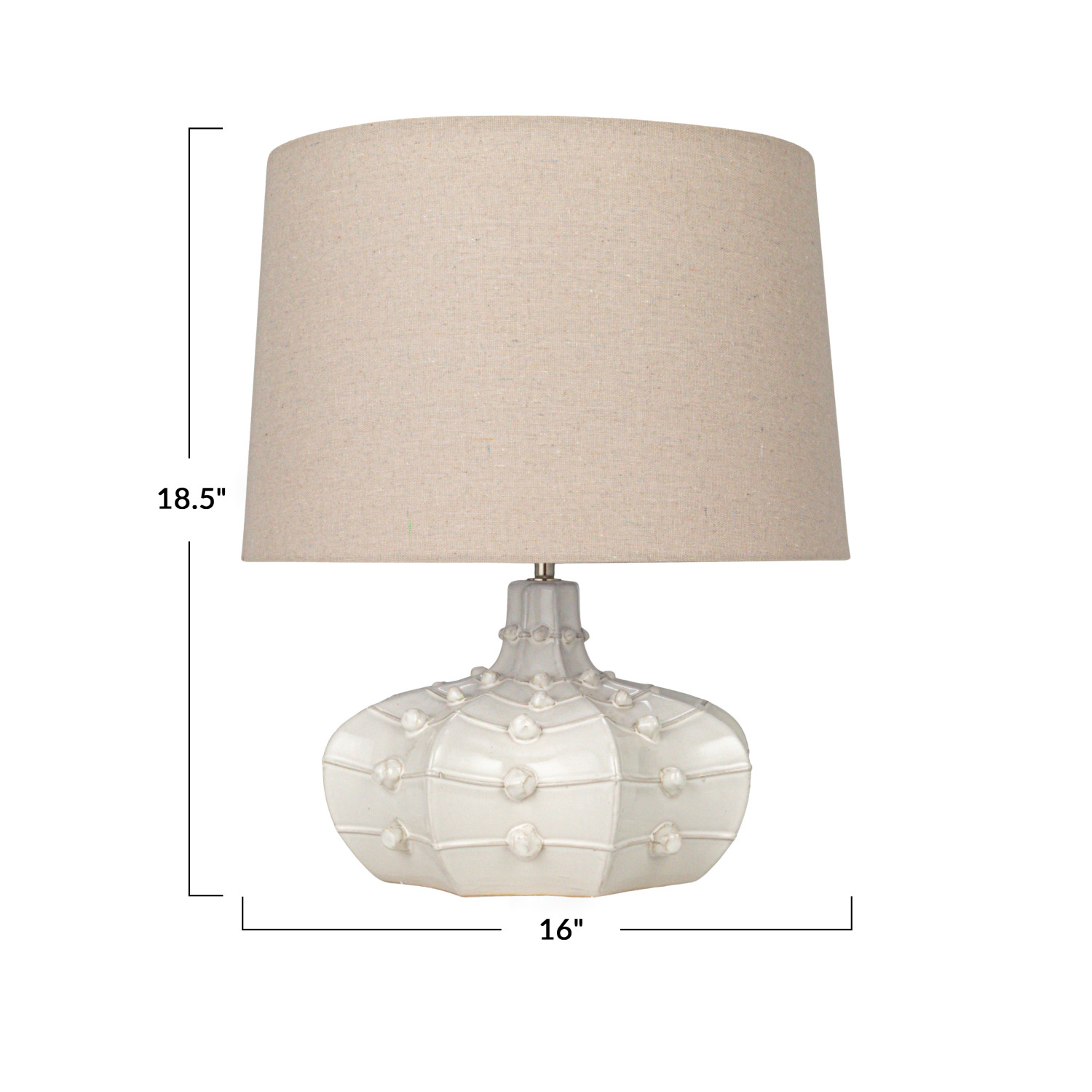 Catalog Name: 16" Round x 18-1/2"H Stoneware Hobnail Fluted Table Lamp w/ Linen Shade & Inline Switch, White