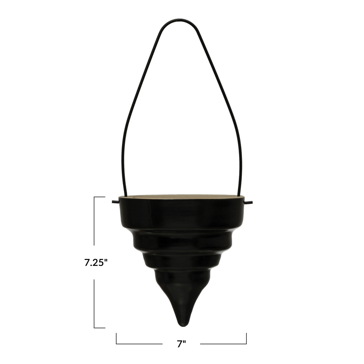 Catalog Name: 7" Round x 7-1/4"H Hanging Terra-cotta Planter w/ Metal Hanger, Matte Black