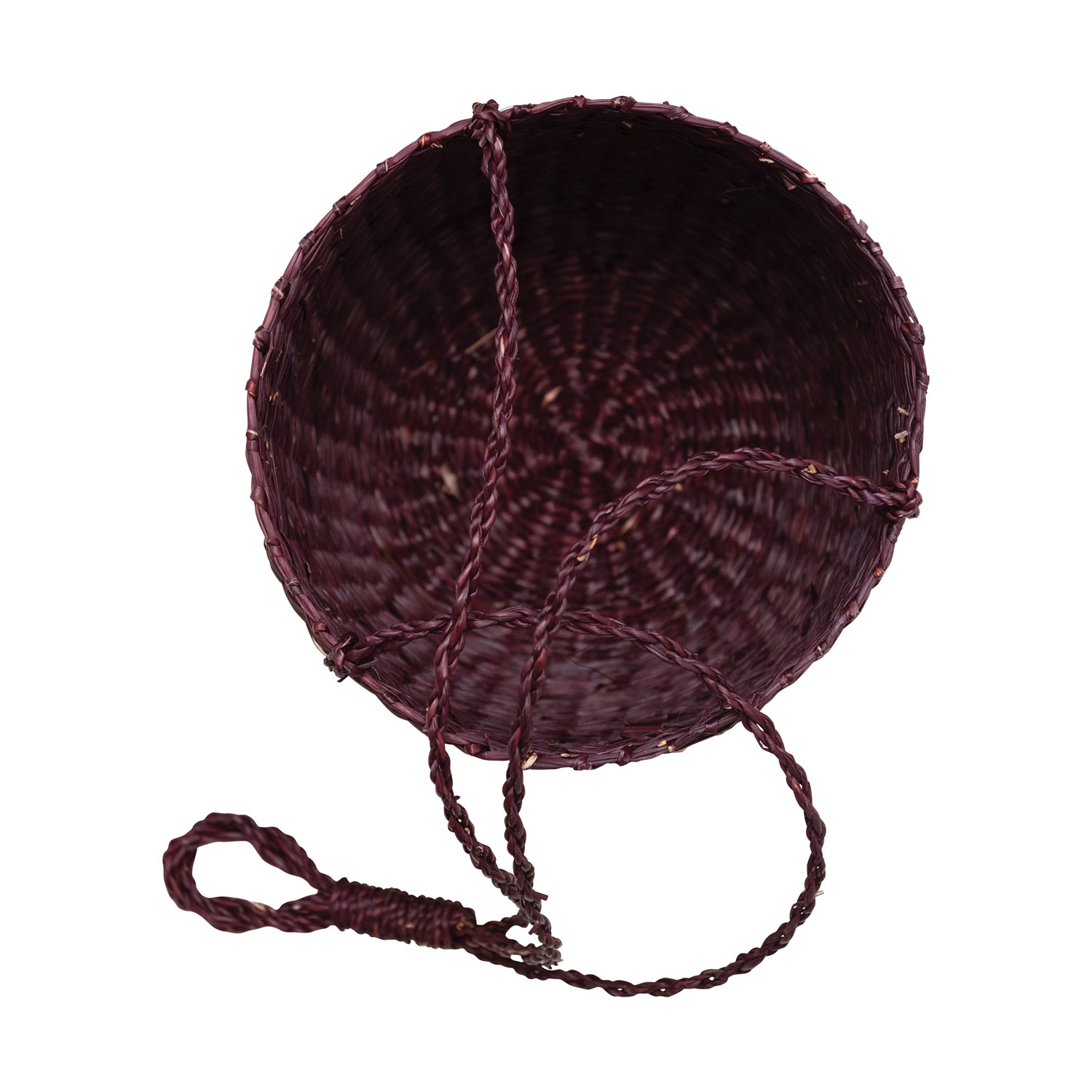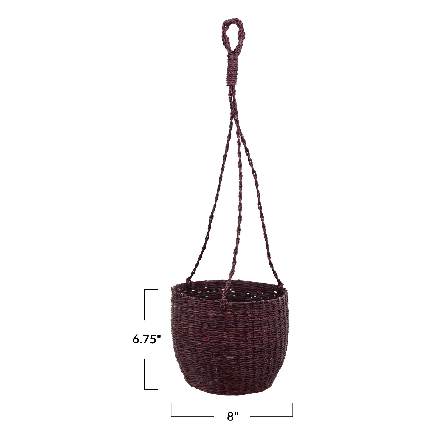 Catalog Name: 8" Round x 6-3/4"H Hanging Hand-Woven Seagrass Basket/Planter, Eggplant Color (Holds 7" Pot)