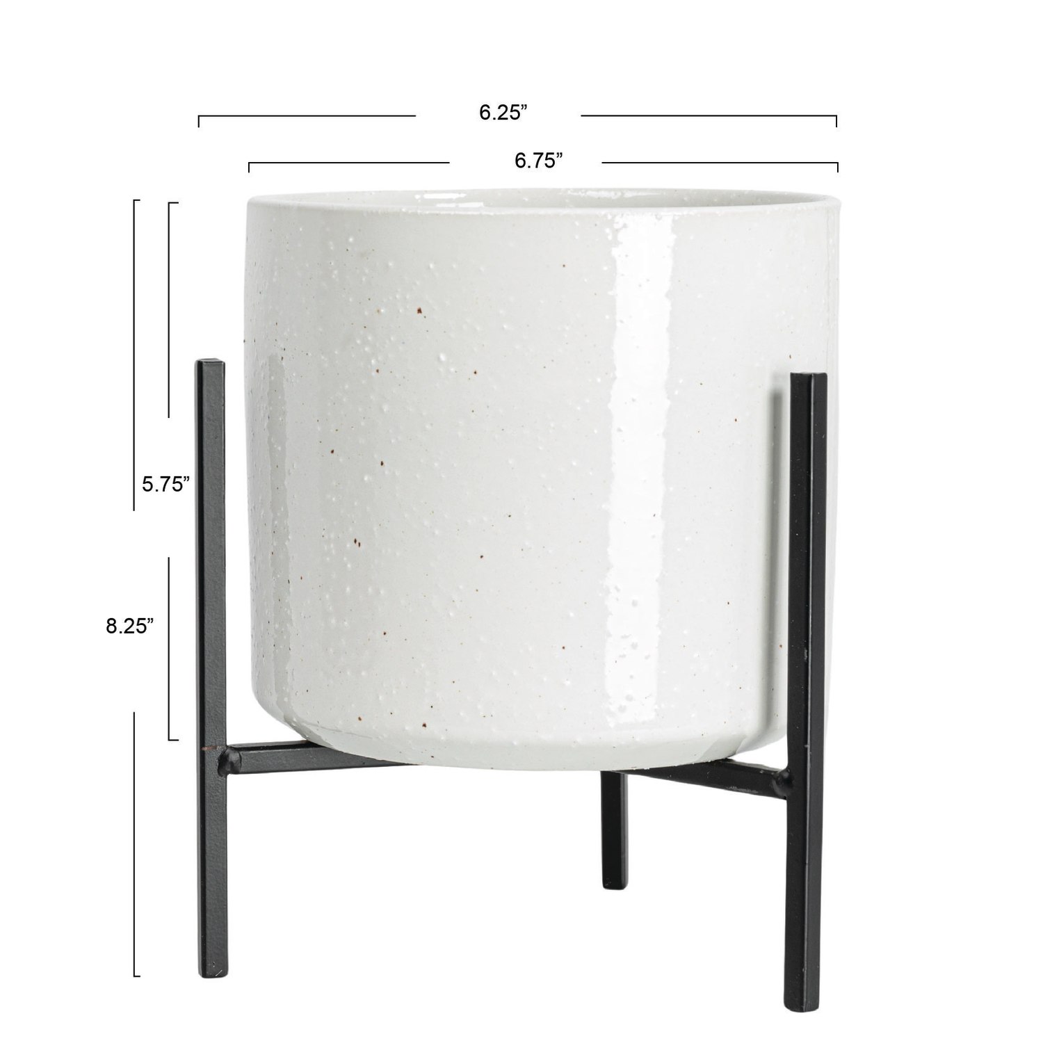 Catalog Name: 6-1/4" Round x 8-1/4"H Stoneware Planter w/ Metal Stand, Black & White, Set of 2 (Holds 5" Pot)