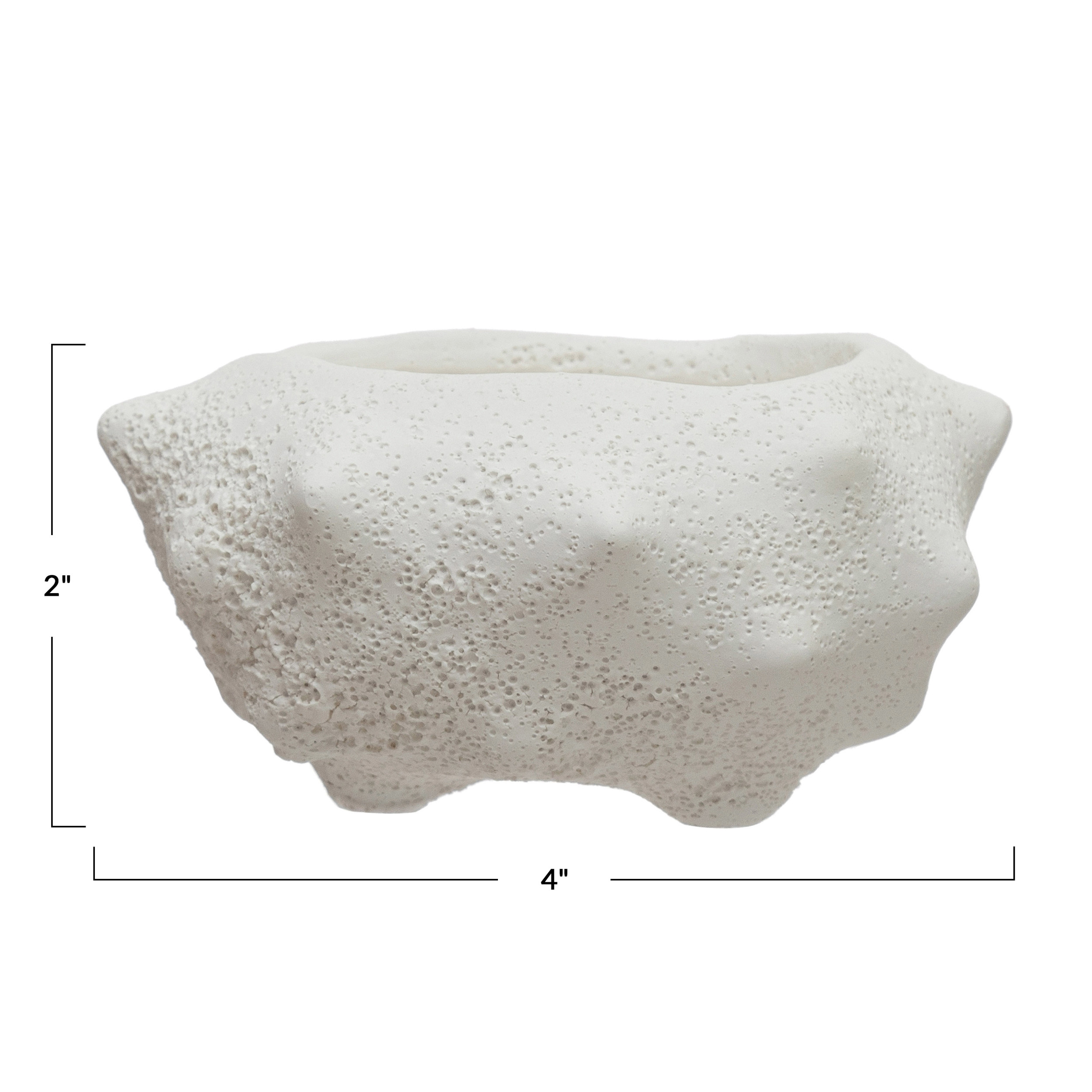 Catalog Name: 4"L x 3-1/2"W x 2"H Coarse Terra-cotta Planter, Volcano Finish, Distressed White (Holds 2" Pot) (Each One Will Vary)
