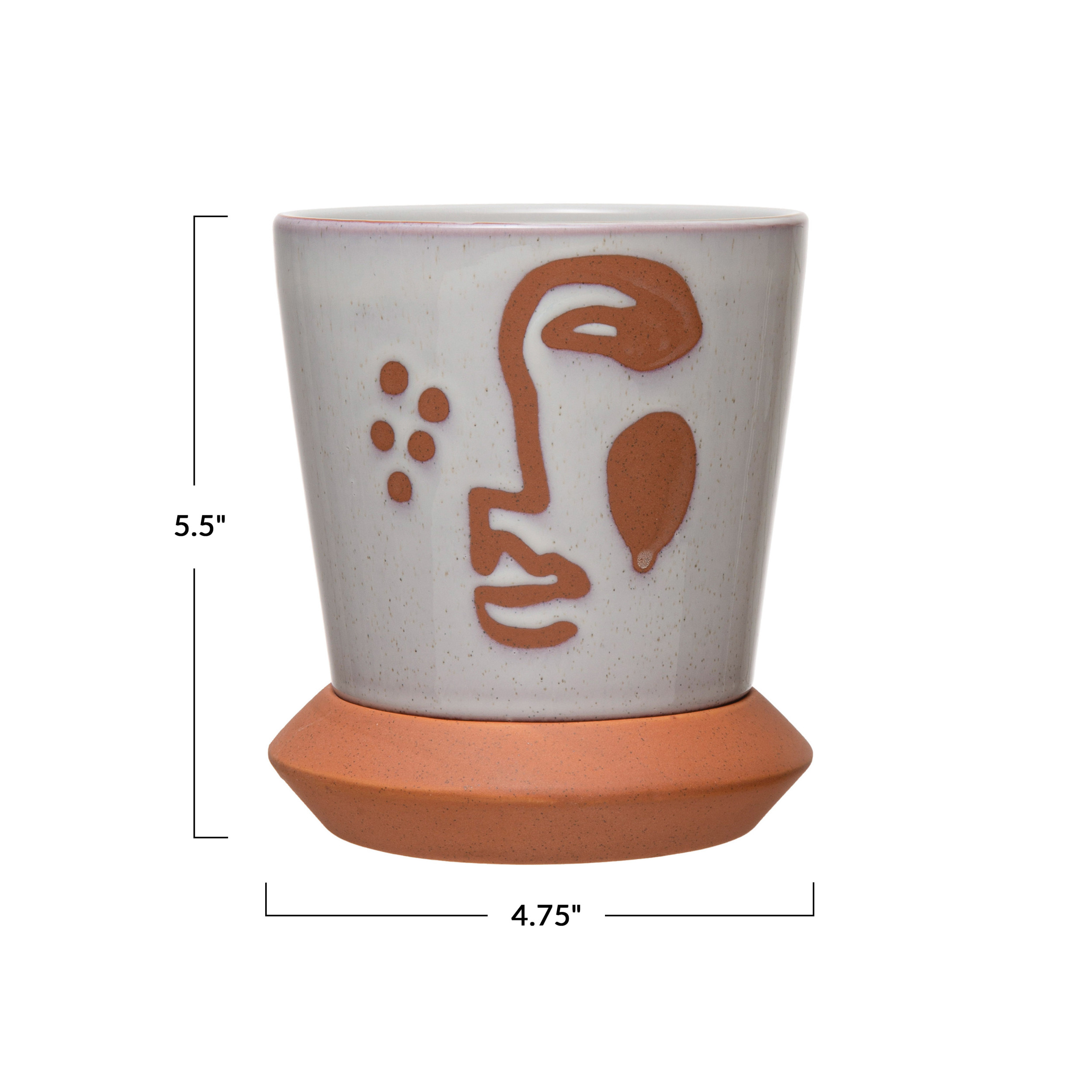 Catalog Name: 4-3/4" Round x 5-1/2"H Stoneware Planter w/ Face & Saucer, White & Terra-cotta Color, Set of 2 (Holds 3" Pot)