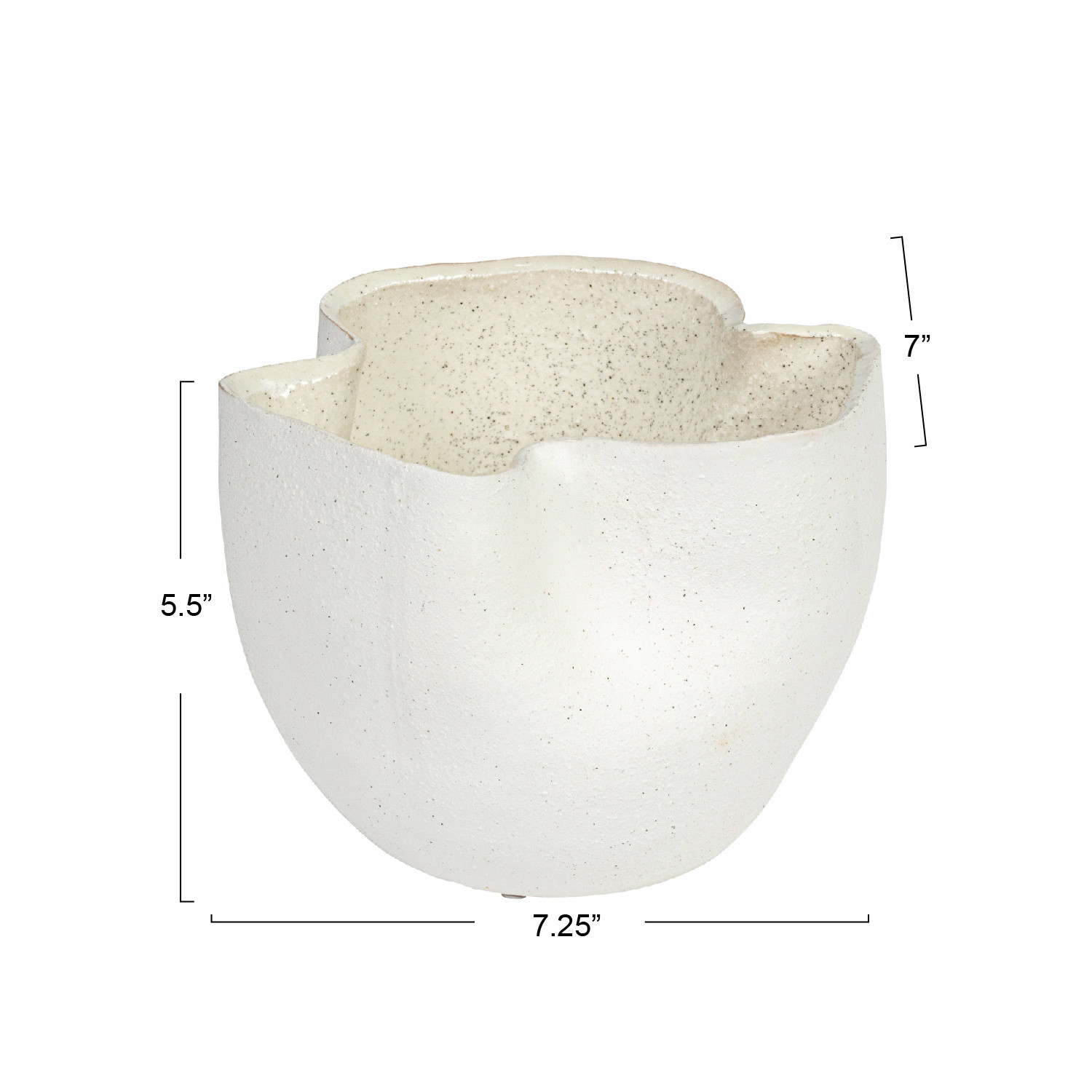 Catalog Name: 7-1/4"L x 7"W x 5-3/4"H Stoneware Ruffled Planter, Sand Finish, Reactive Glaze, White (Holds 4" Pot) (Each One Will Vary)