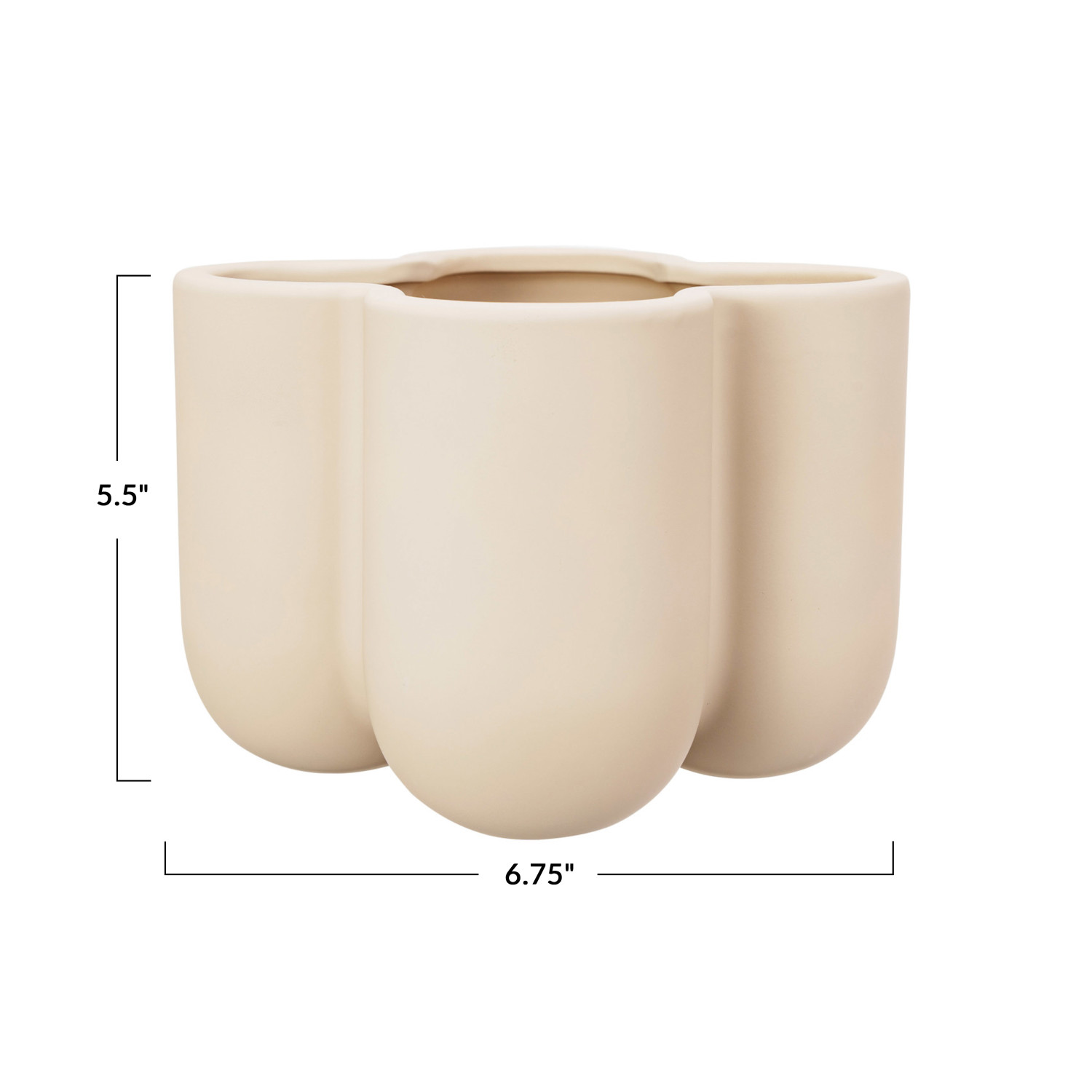 Catalog Name: 6-3/4"L x 6-3/4"W x 5-1/2"H Stoneware Formed Planter, Latex Glaze, Matte Beige
