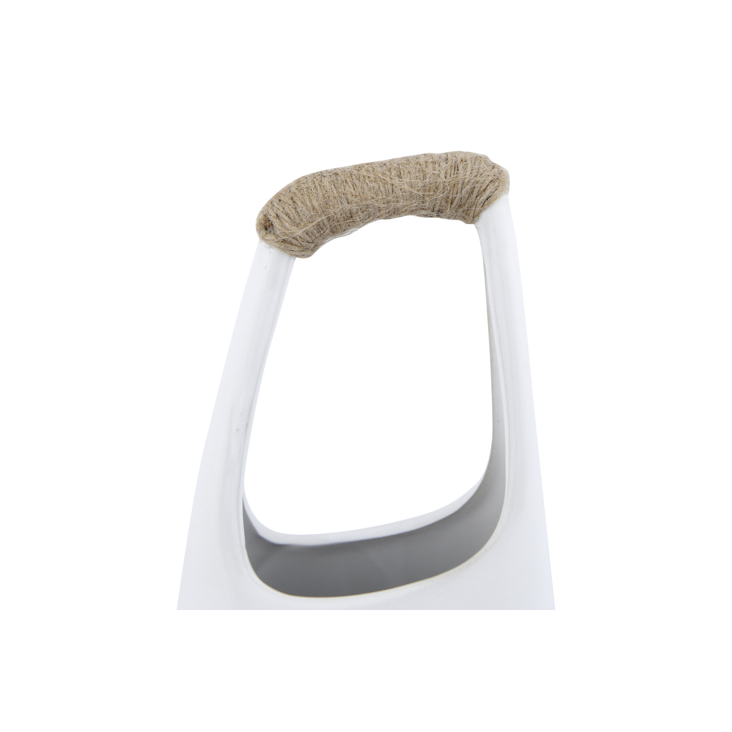 Brilliant white stoneware and a large center handle make this vase an impressive piece of art. Alone, it is a perfect addition to a shelf or mantel. For a little extra color, fill with a few dried botanicals and display proudly on a tabletop or counter.