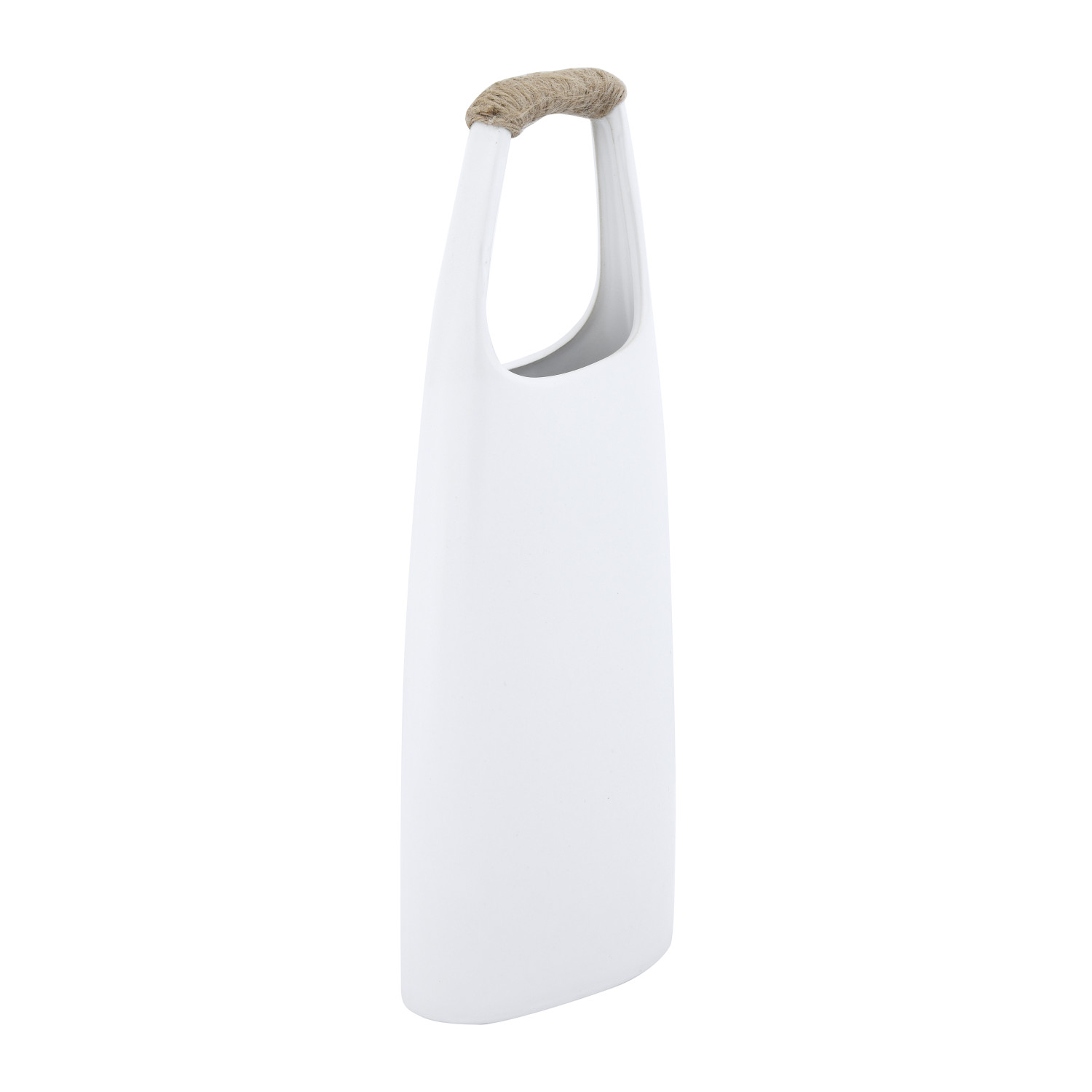 Catalog Name: 5-1/4"L x 3"W x 15-1/4"H Stoneware Vase w/ Rattan Wrapped Handle, White