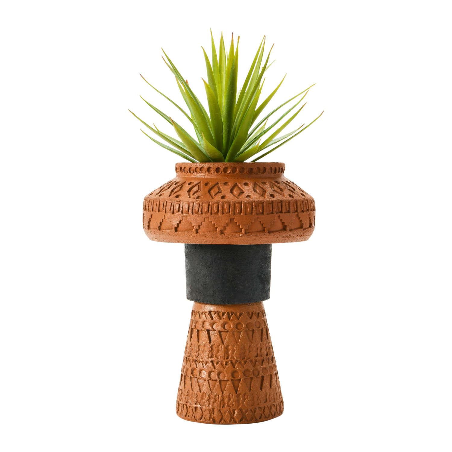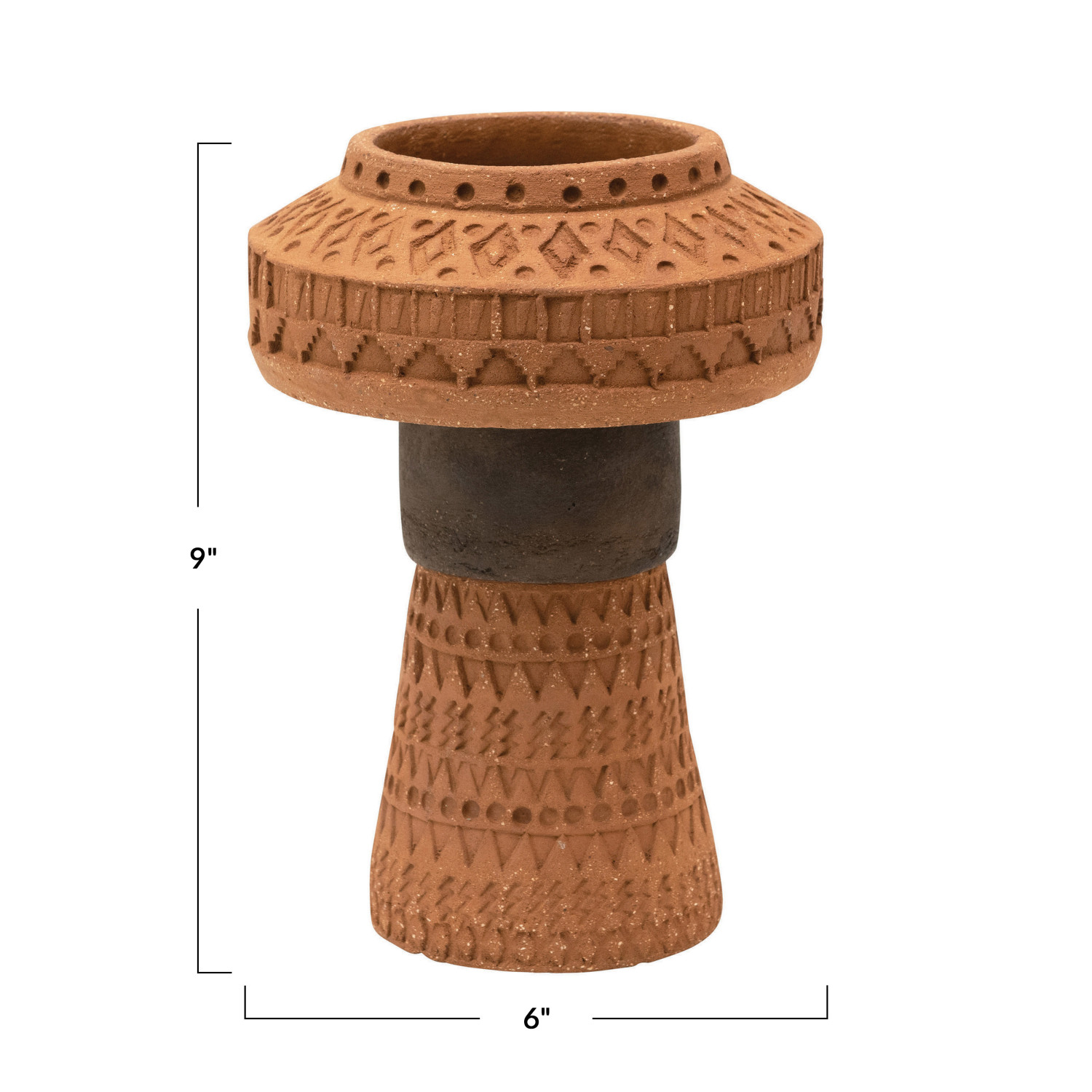 Catalog Name: 6" Round x 9"H Handmade Debossed Terra-cotta Footed Vase, Natural & Black