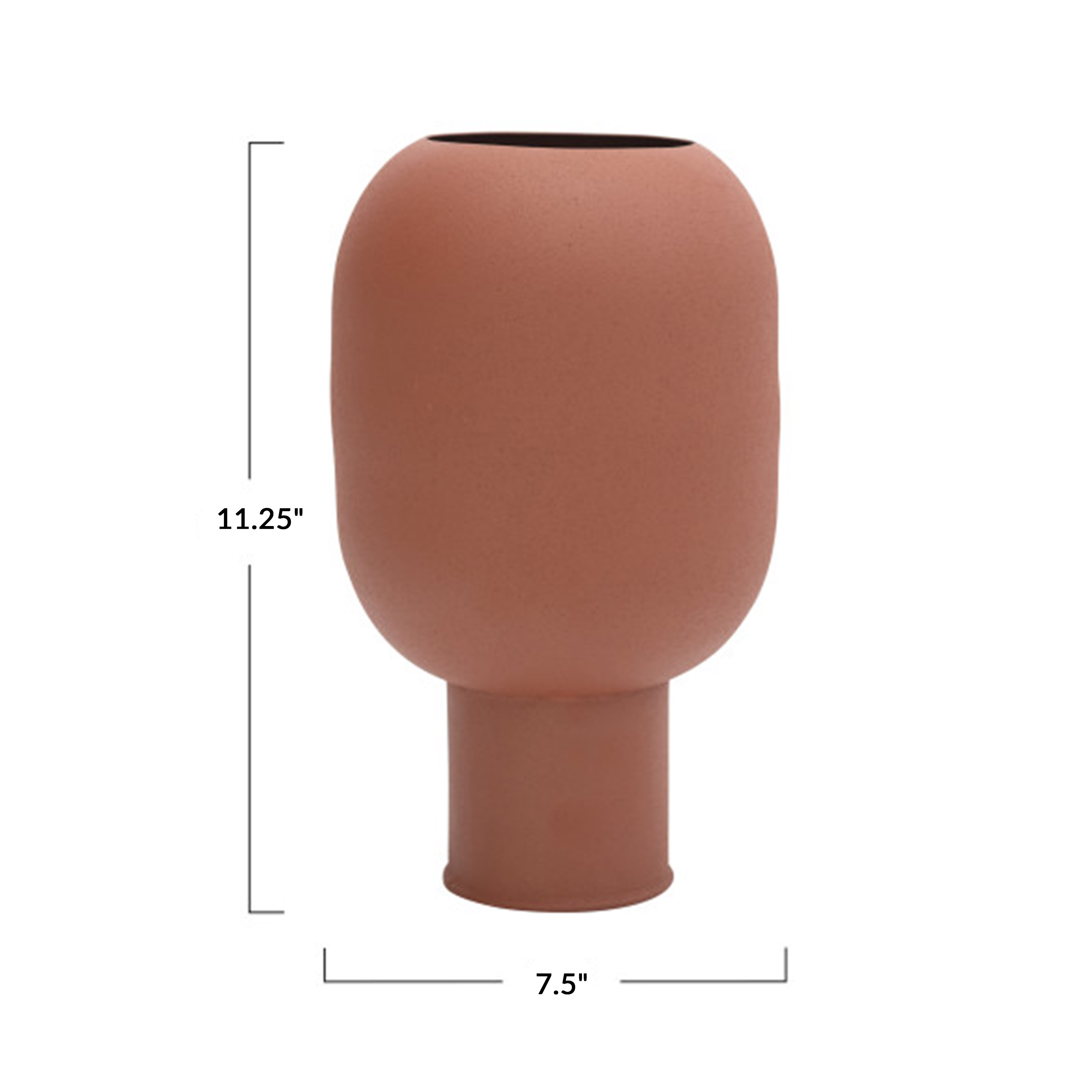 Catalog Name: 6-1/4" Round x 10-1/4"H Textured Metal Vase, Matte Sienna Color