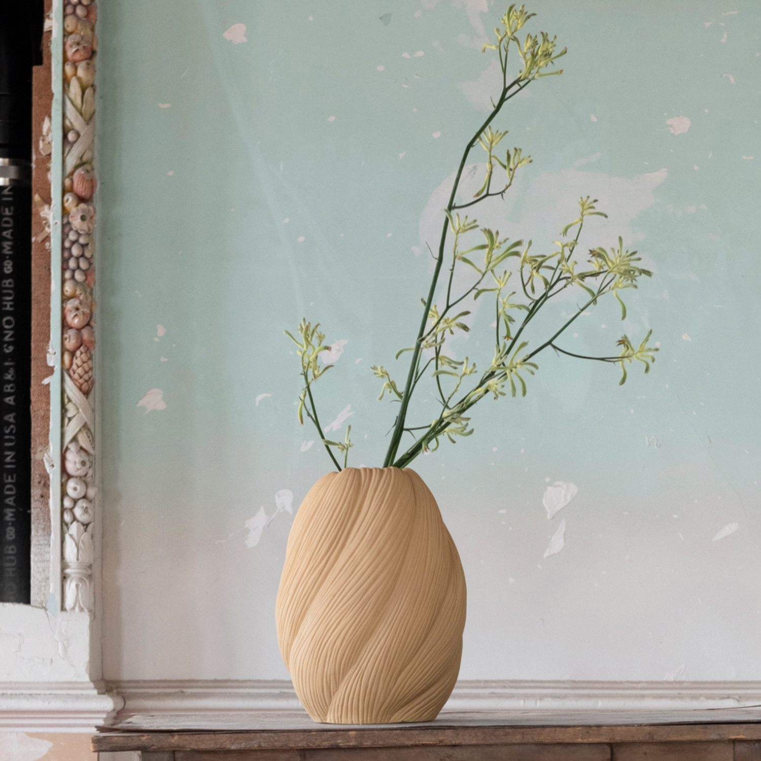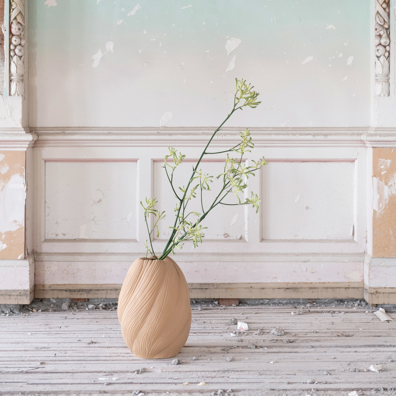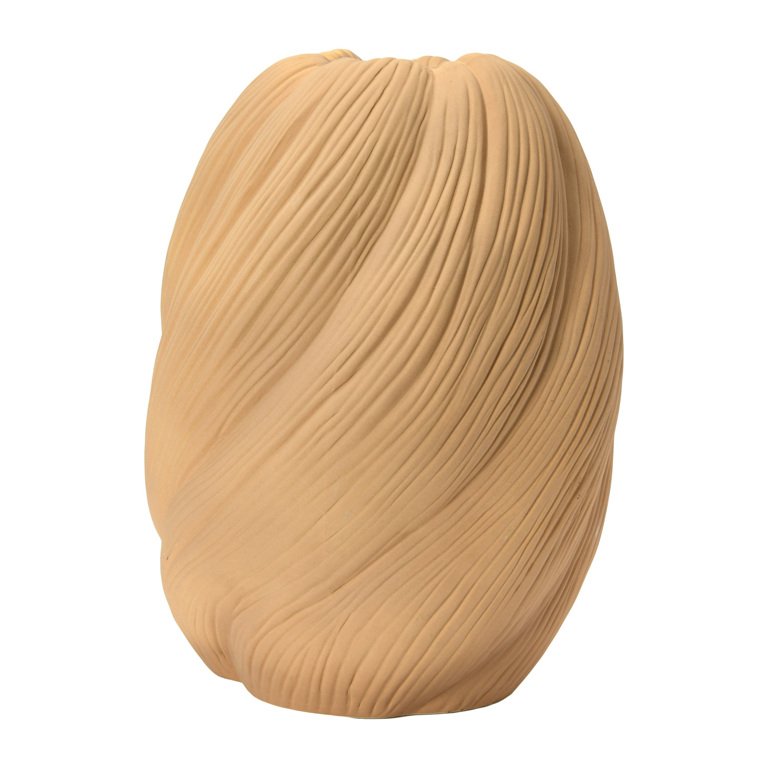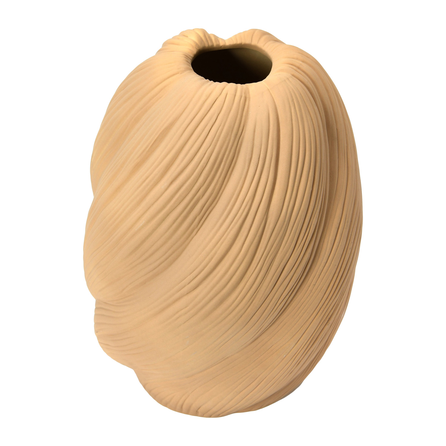 This strikingly modern vase showcases an organic sculptural silhouette in a natural sand finish.