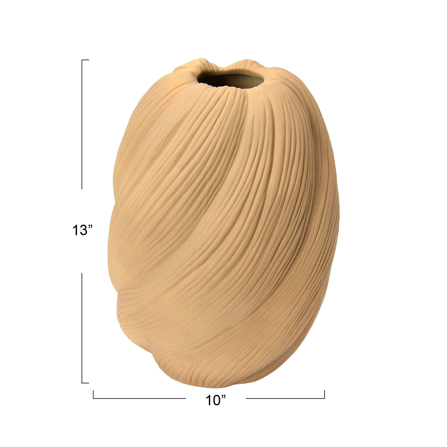Catalog Name: 9-1/2" Round x 13"H Stoneware Sculptural Vase, Sand Finish, Putty Color