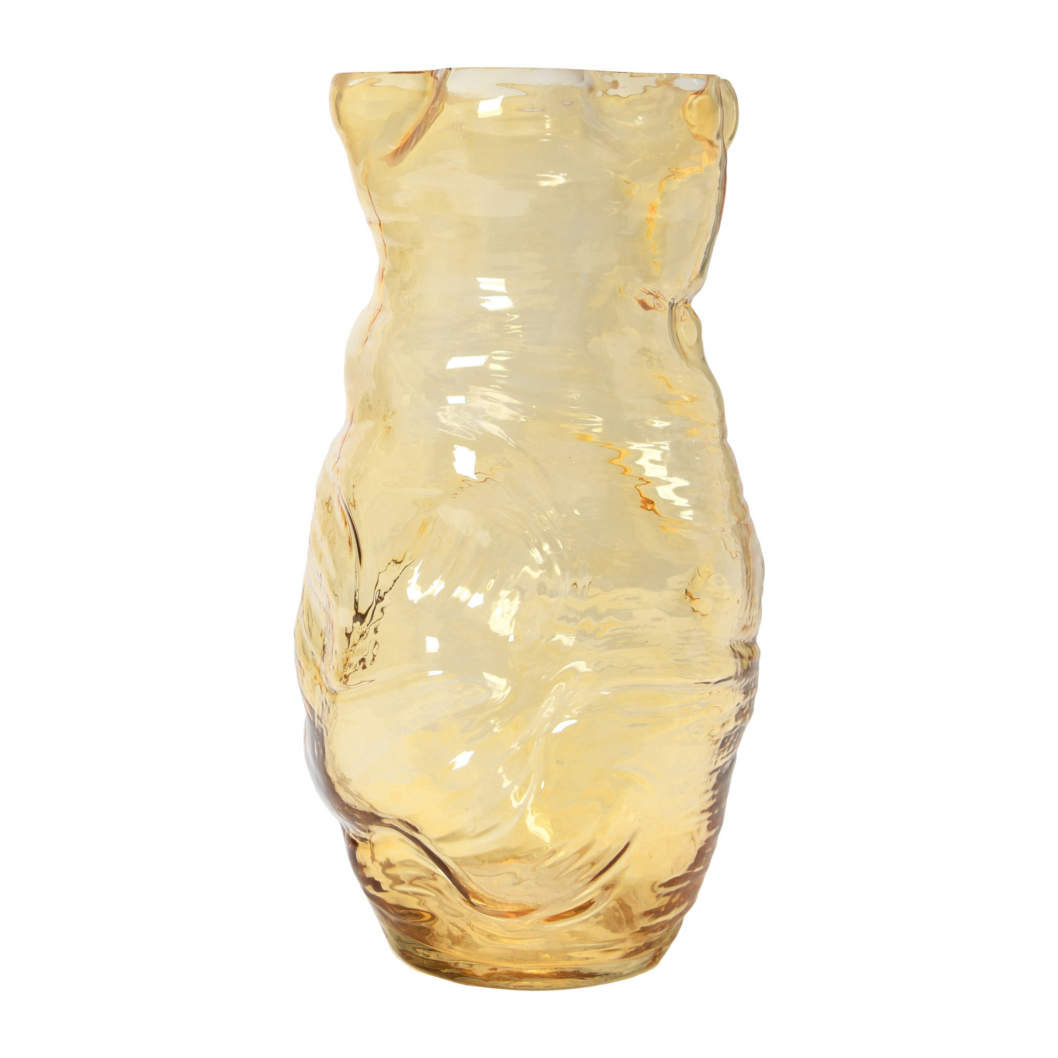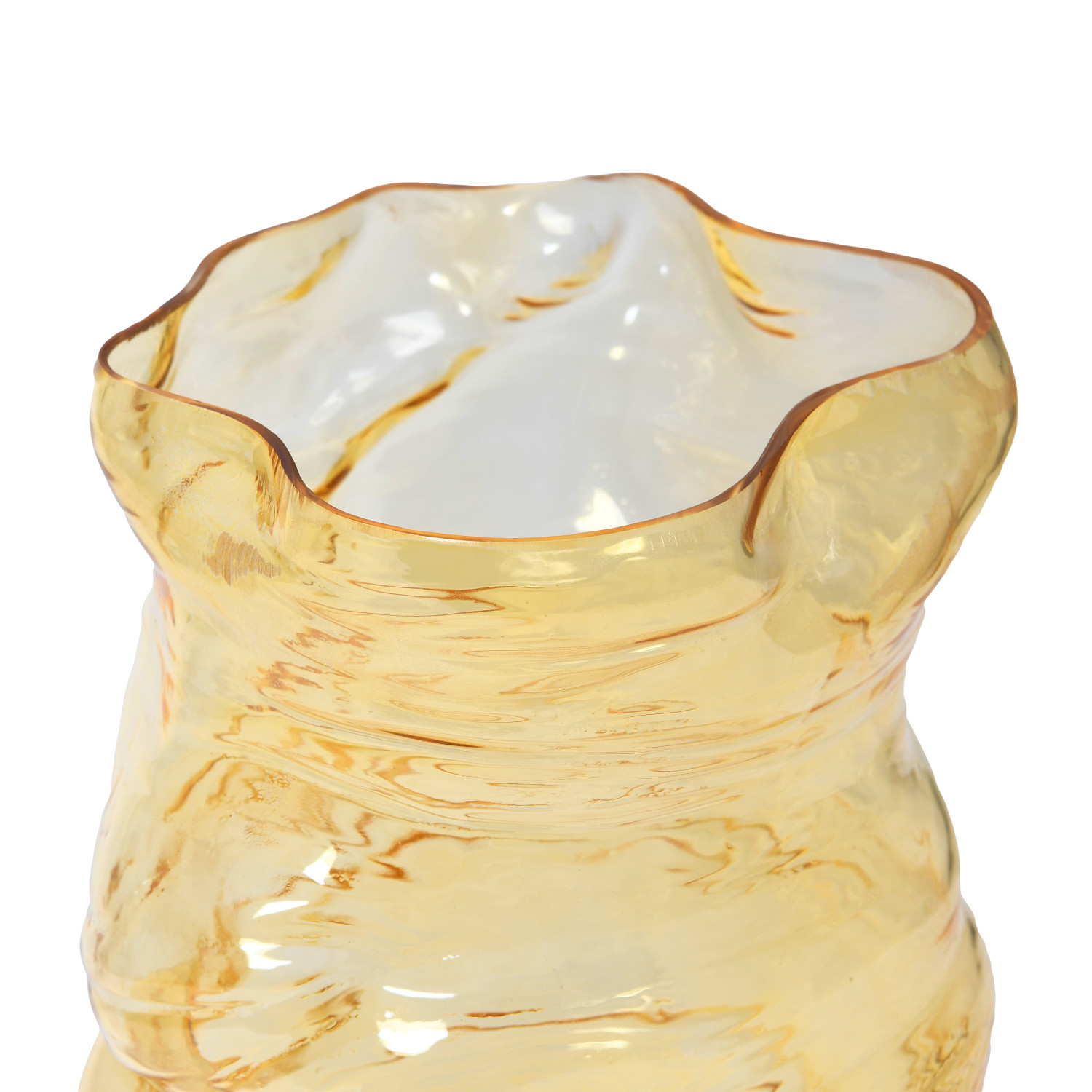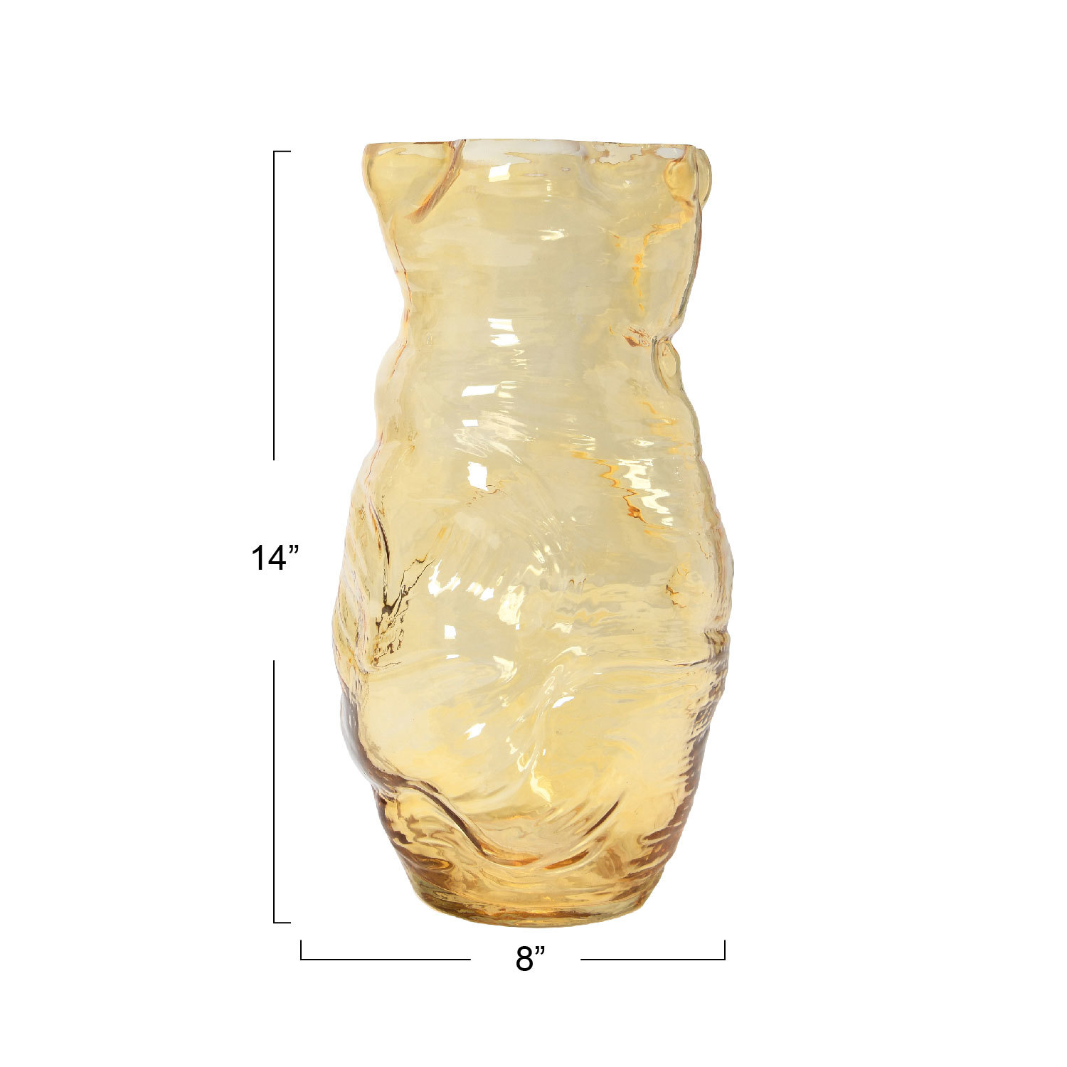 Catalog Name: 7-3/4"L x 7-3/4"W x 13-3/4"H Hand-Blown Glass Organic Shaped Vase, Amber Color