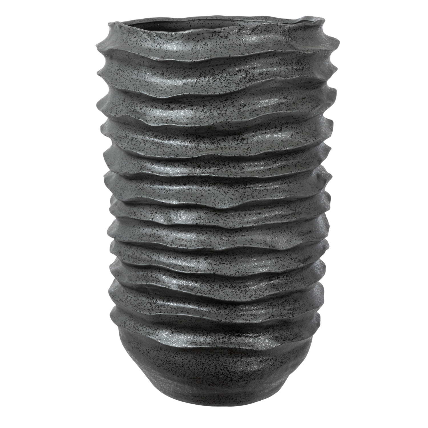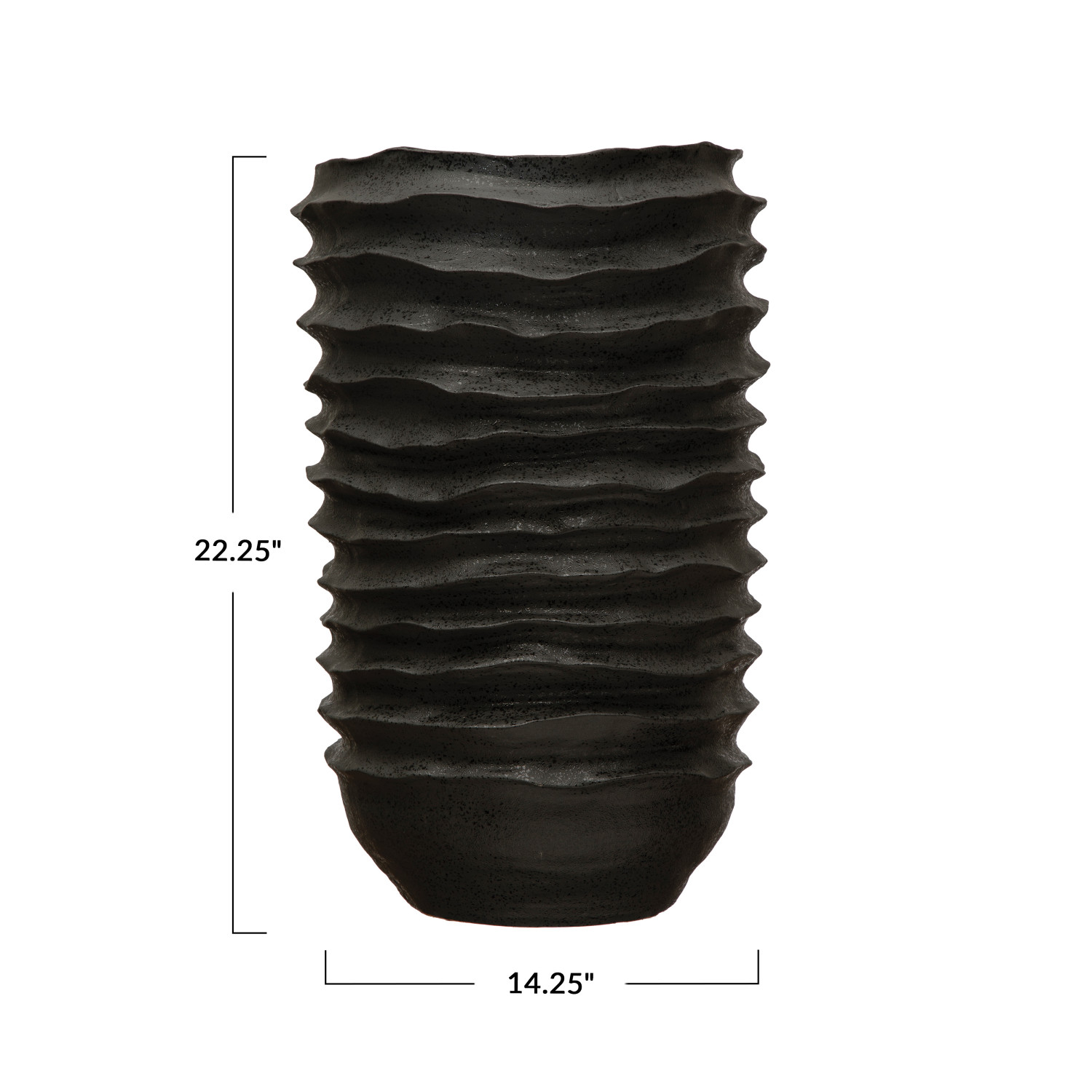 Catalog Name: 14-1/4" Round x 22-1/4"H Stoneware Pleated Planter/Vase, Matte Black, Truck Ship
