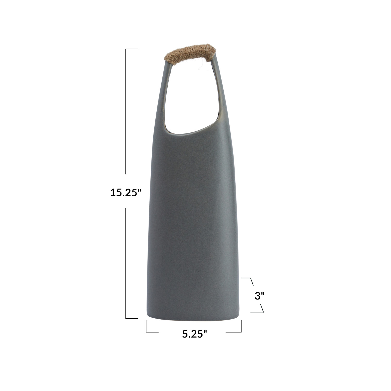 Stoneware Vase w/ Rattan Wrapped Handle, Grey