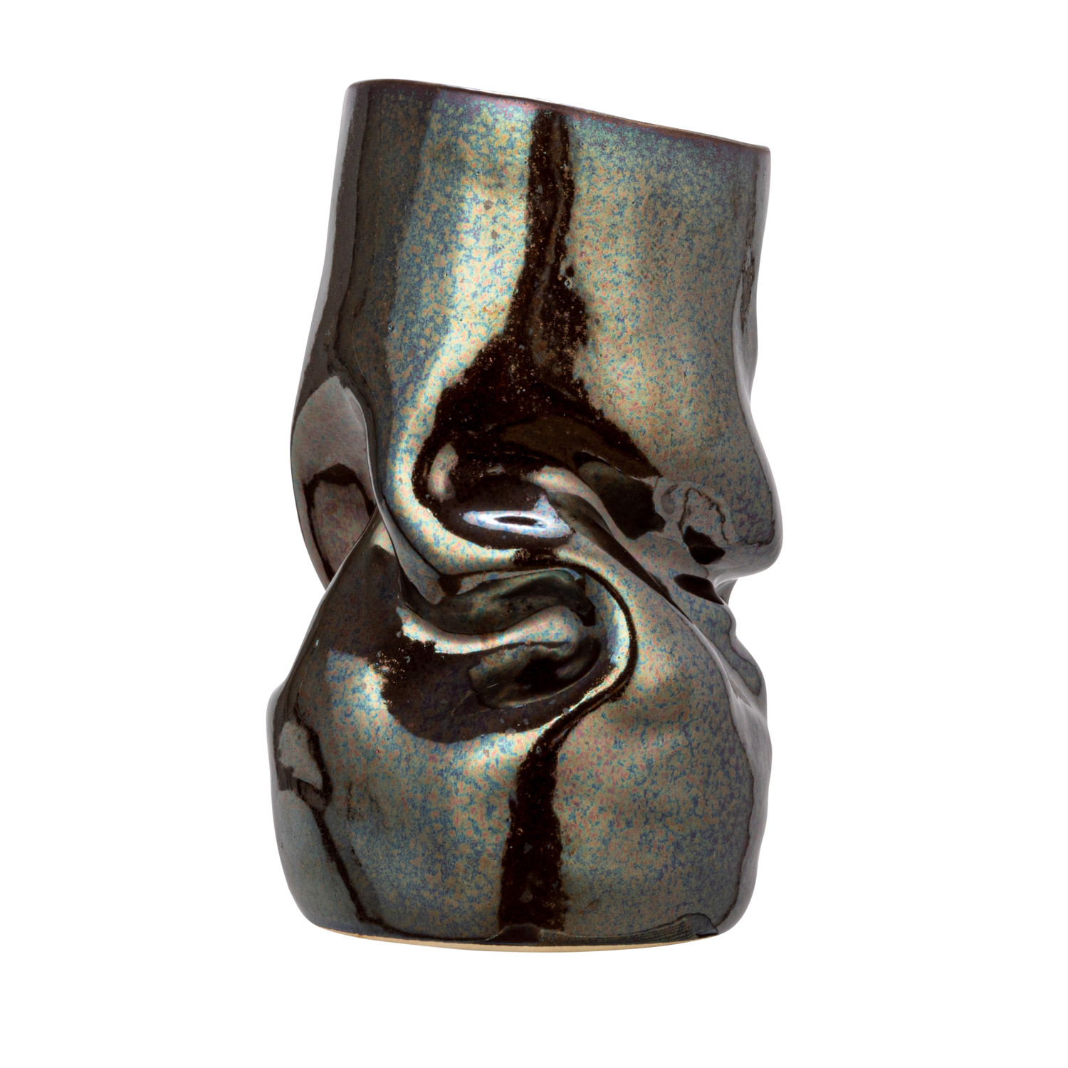 Catalog Name: 5-1/2" Round x 8-3/4"H Stoneware Organic Shaped Vase, Iridescent Finish, Brown