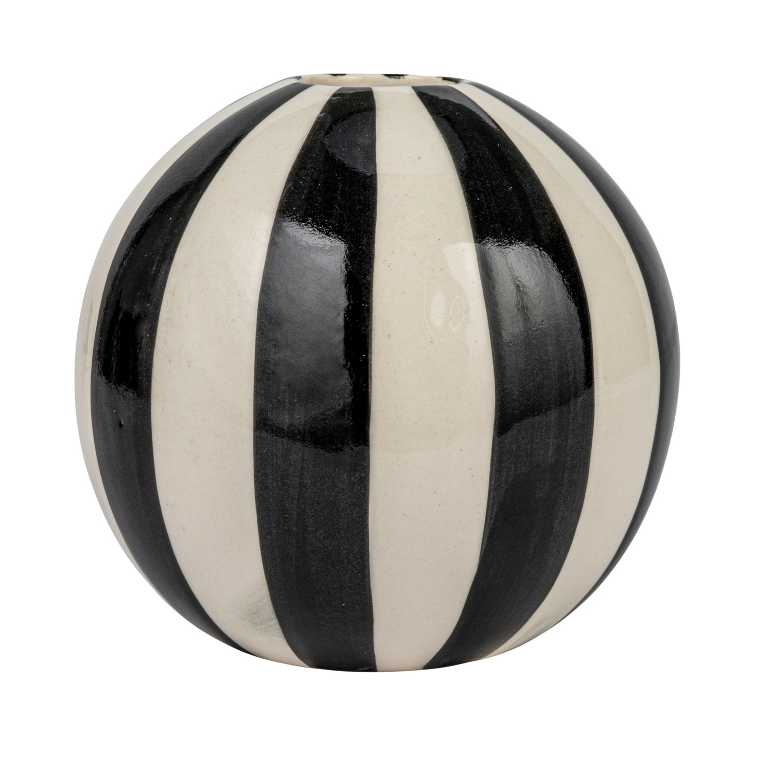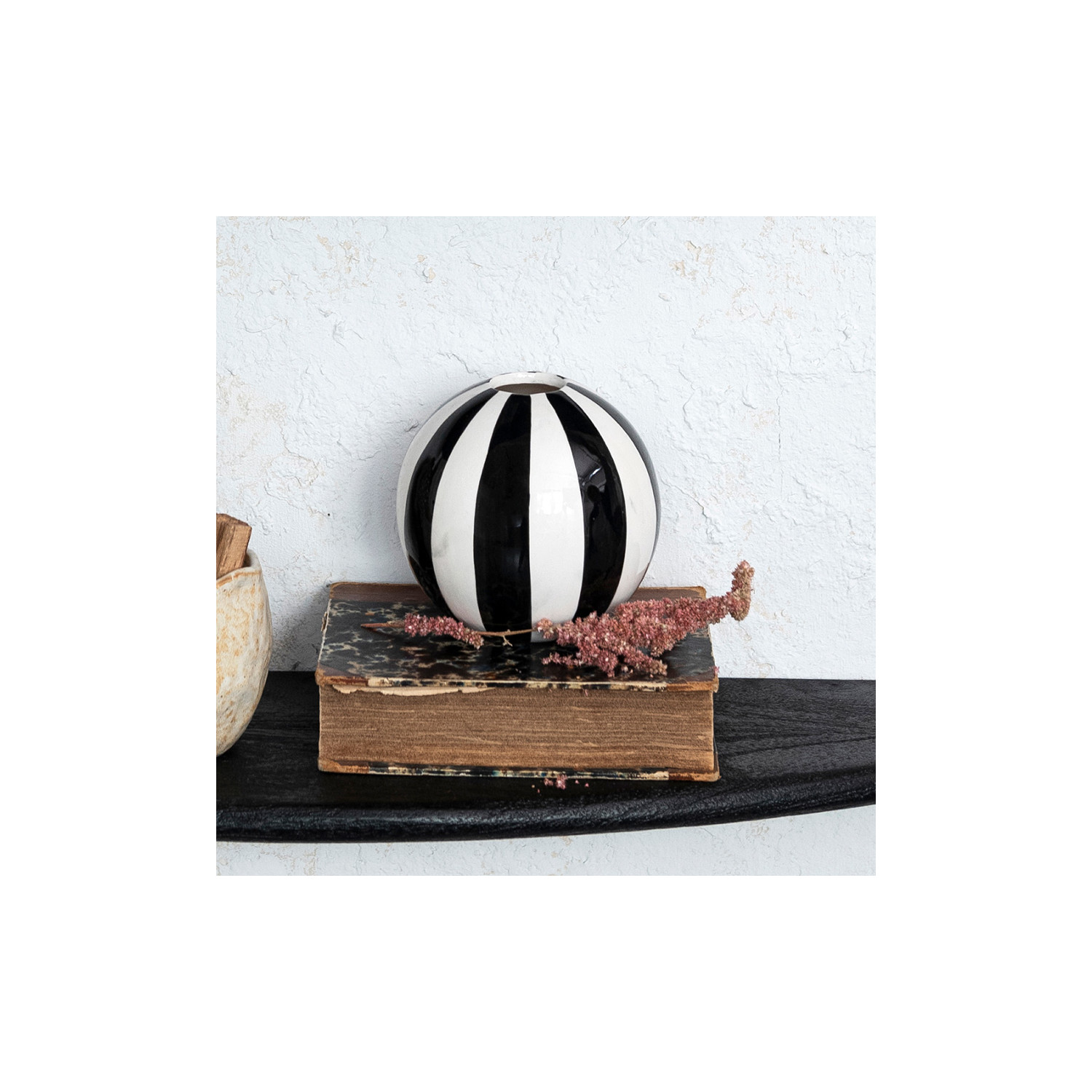 Catalog Name: 4-1/4" Round x 3-3/4"H Stoneware Striped Ball Vase, Black & White