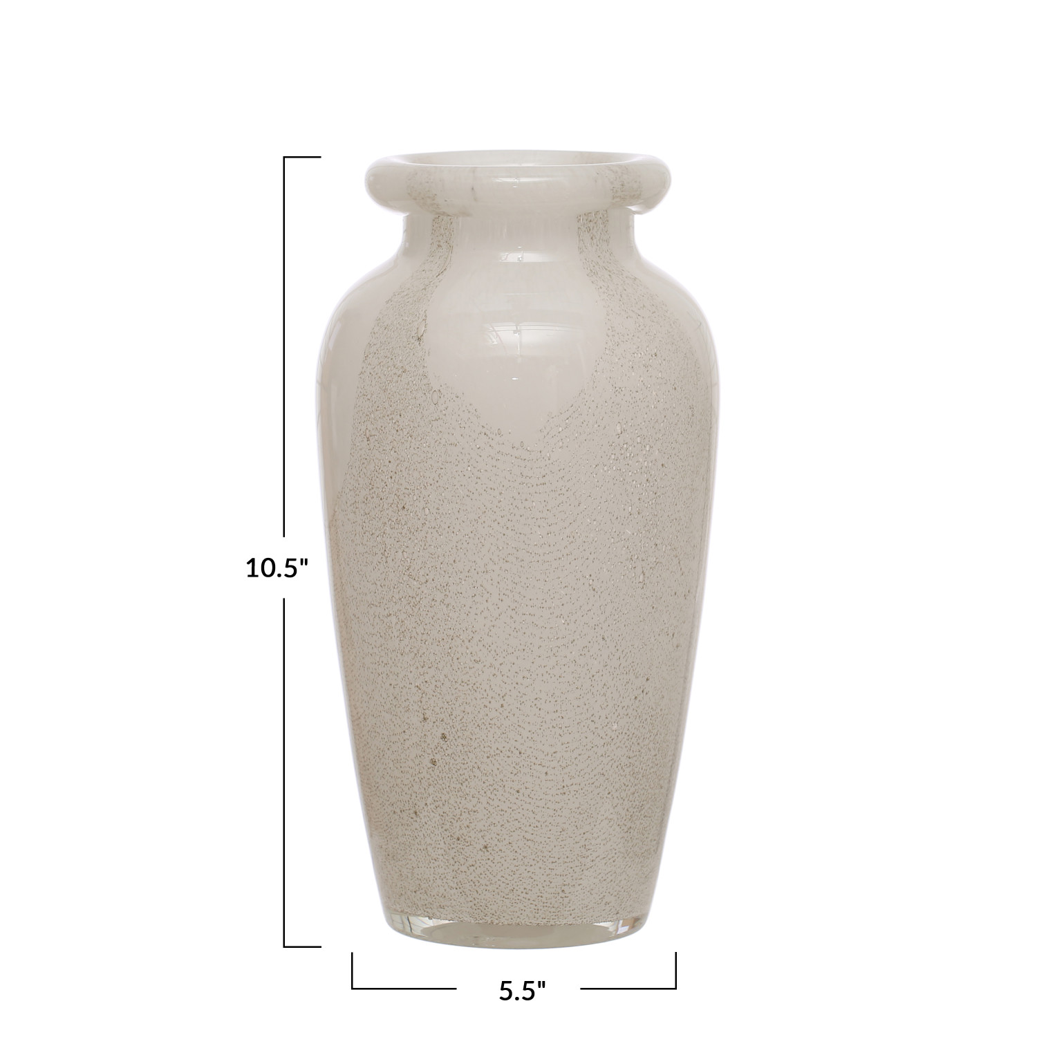 Catalog Name: 5-1/2" Round x 10-1/2"H Art Glass Vase, White & Grey