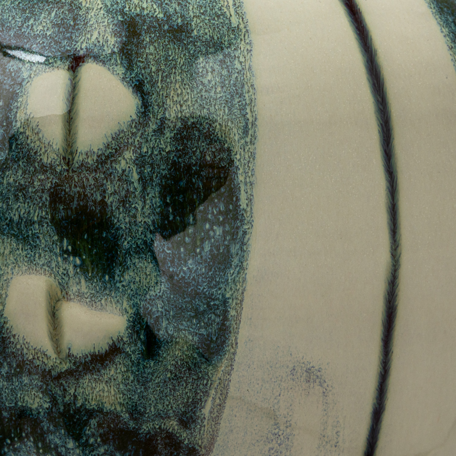 Catalog Name: 9" Round x 8-1/2"H Hand-Painted Stoneware Vase w/ Design, Reactive Glaze, Cream Color & Green (Each One Will Vary)