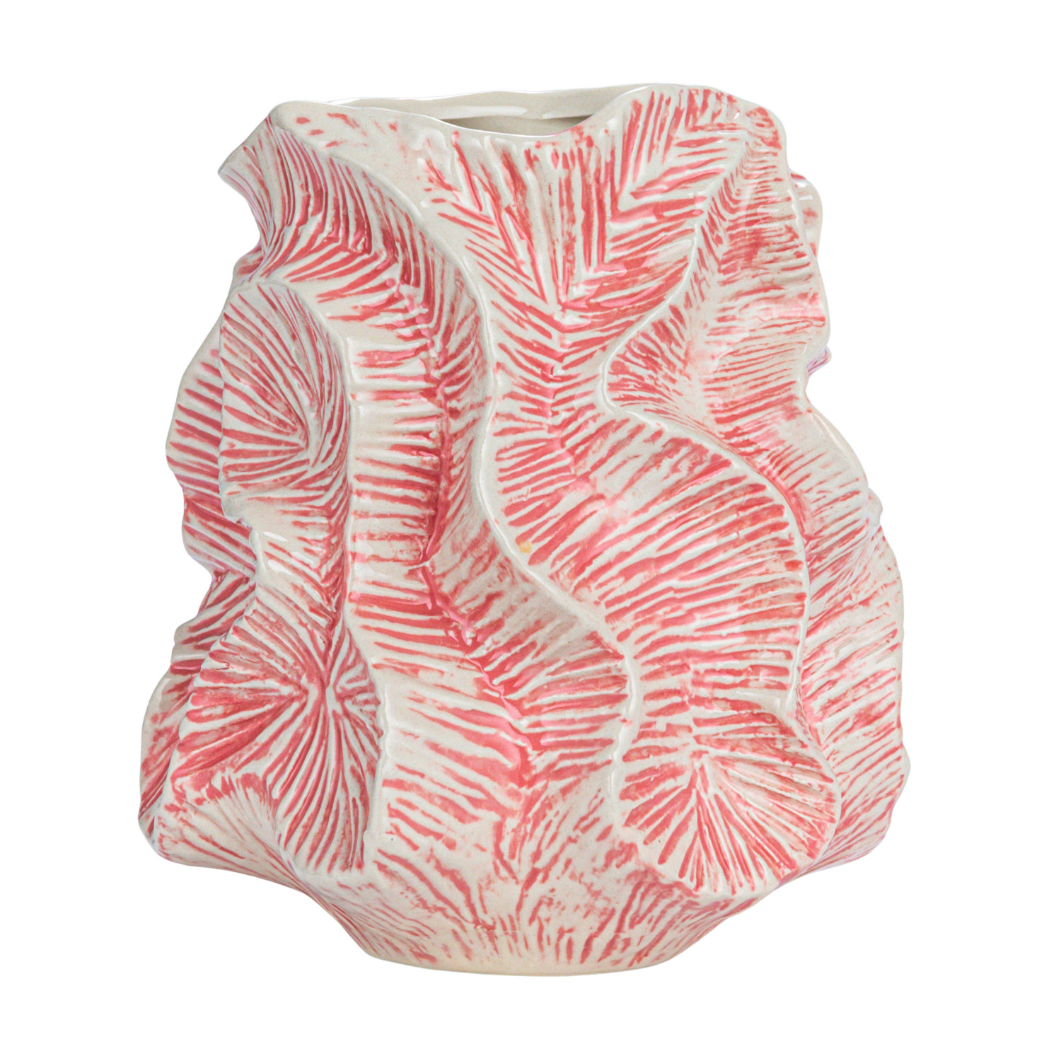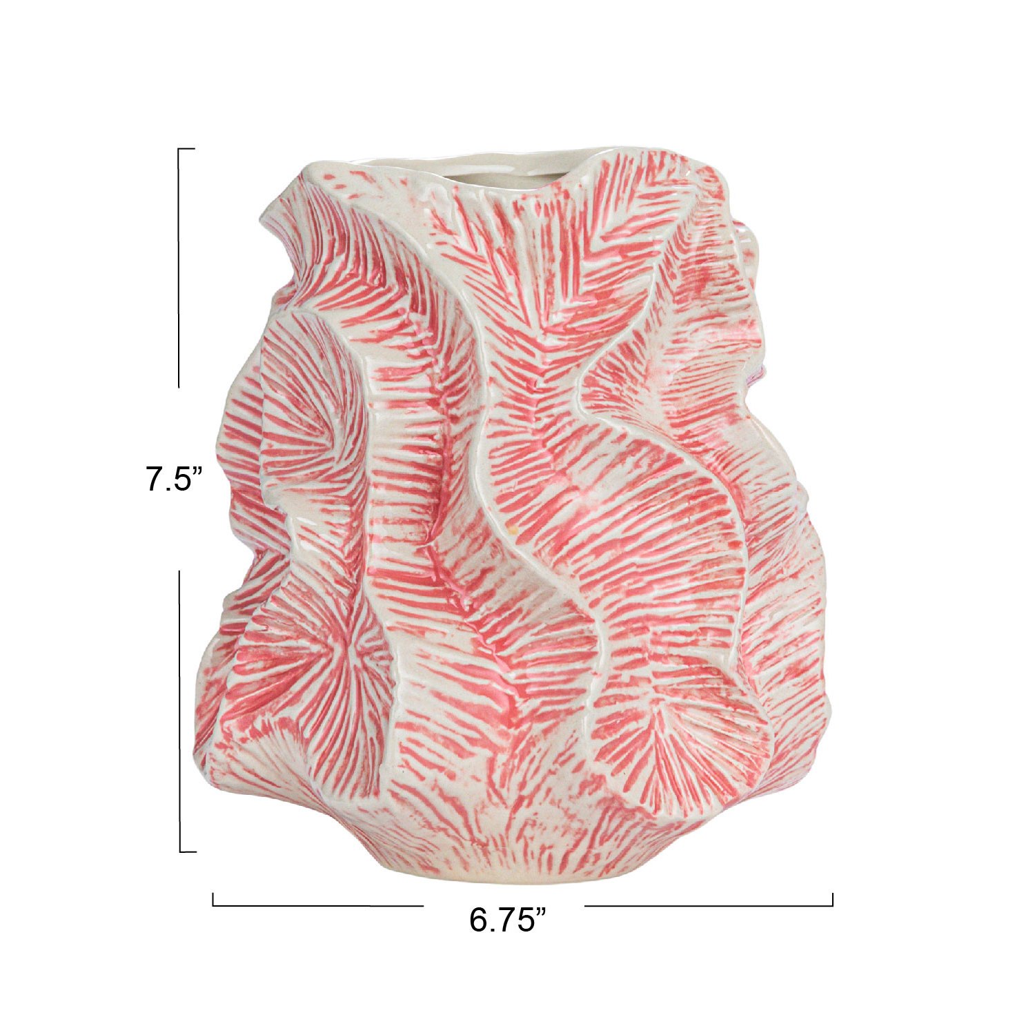 Catalog Name: 6-3/4" Round x 7-1/2"H Textured Stoneware Organic Shaped Vase, Reactive Glaze, Pink (Each One Will Vary)