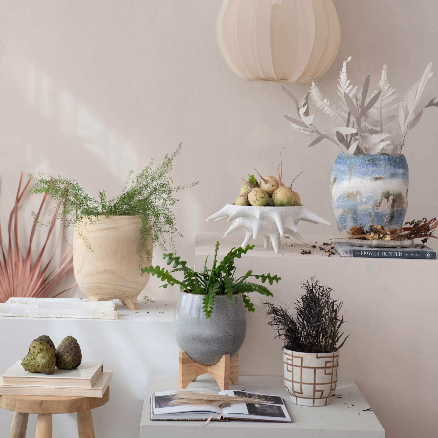 This Azure Embrace Stoneware Vase stands a proud 12.25 inches high and spans 10 inches round, offering a spacious sanctuary for a 7-inch pot. The vase's blue hue, reminiscent of a painter's stroke across the sky, is the result of a reactive glaze that ensures no two pieces are exactly alike. Its organic shape is a nod to the natural world, inviting a sense of harmony and balance into the home. The 7-inch opening is perfect for an array of floral arrangements, from a simple bouquet to an elaborate display. Crafted from durable stoneware, this vase is not only a vessel for beauty but also a lasting piece of decor that will enrich every space for years to come.