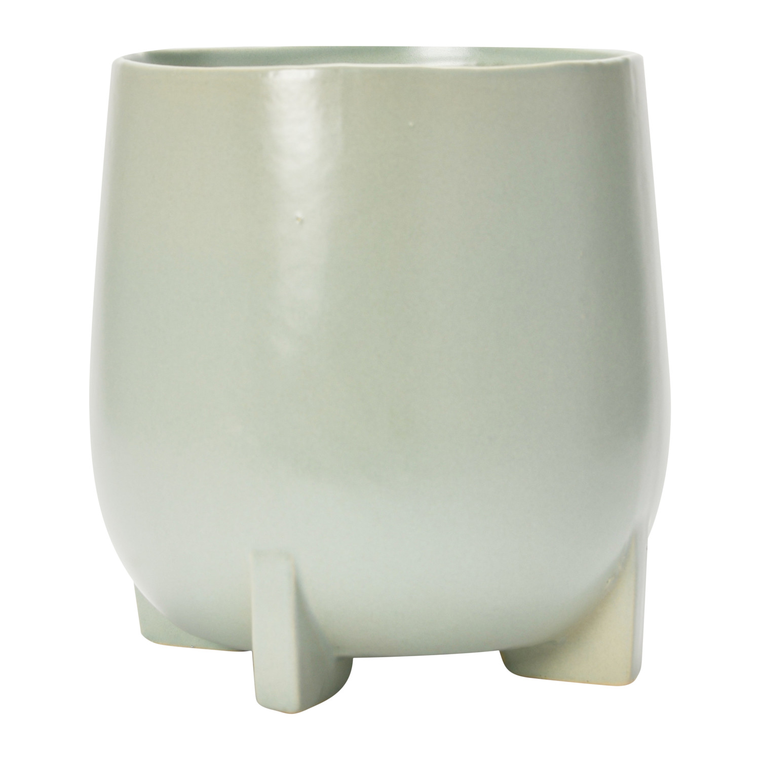 This minimalist Scandinavian planter features sleek, matte stoneware with a carved footed base. Footed stoneware planter in mint blue finish. Add a dash of contemporary charm to any living space with this stylishly versatile planter. Made from 100% stoneware.