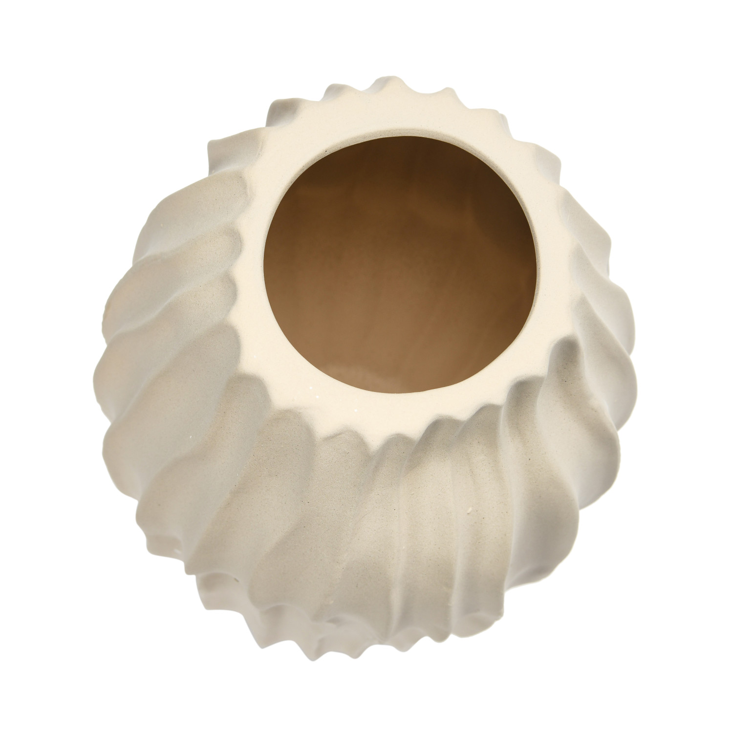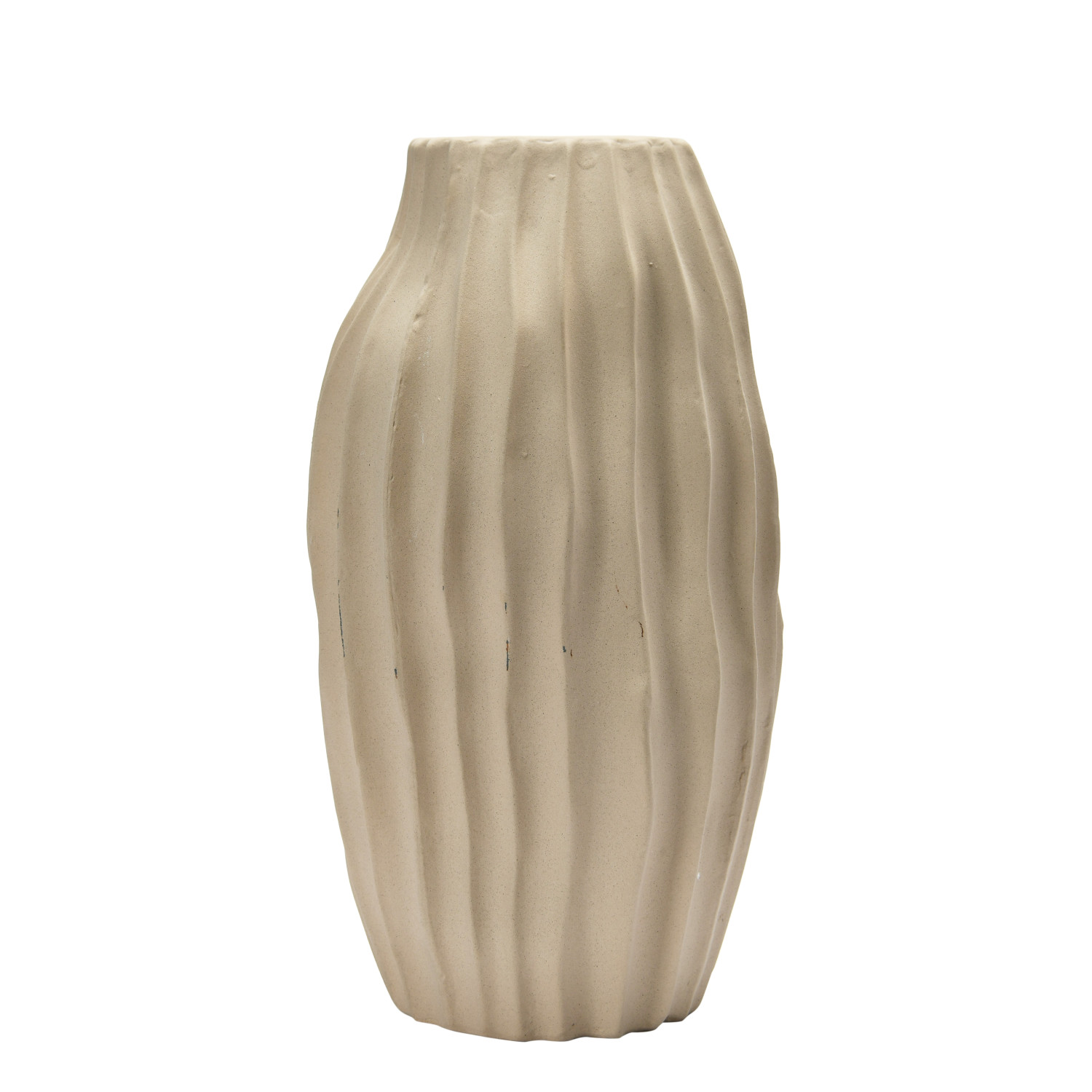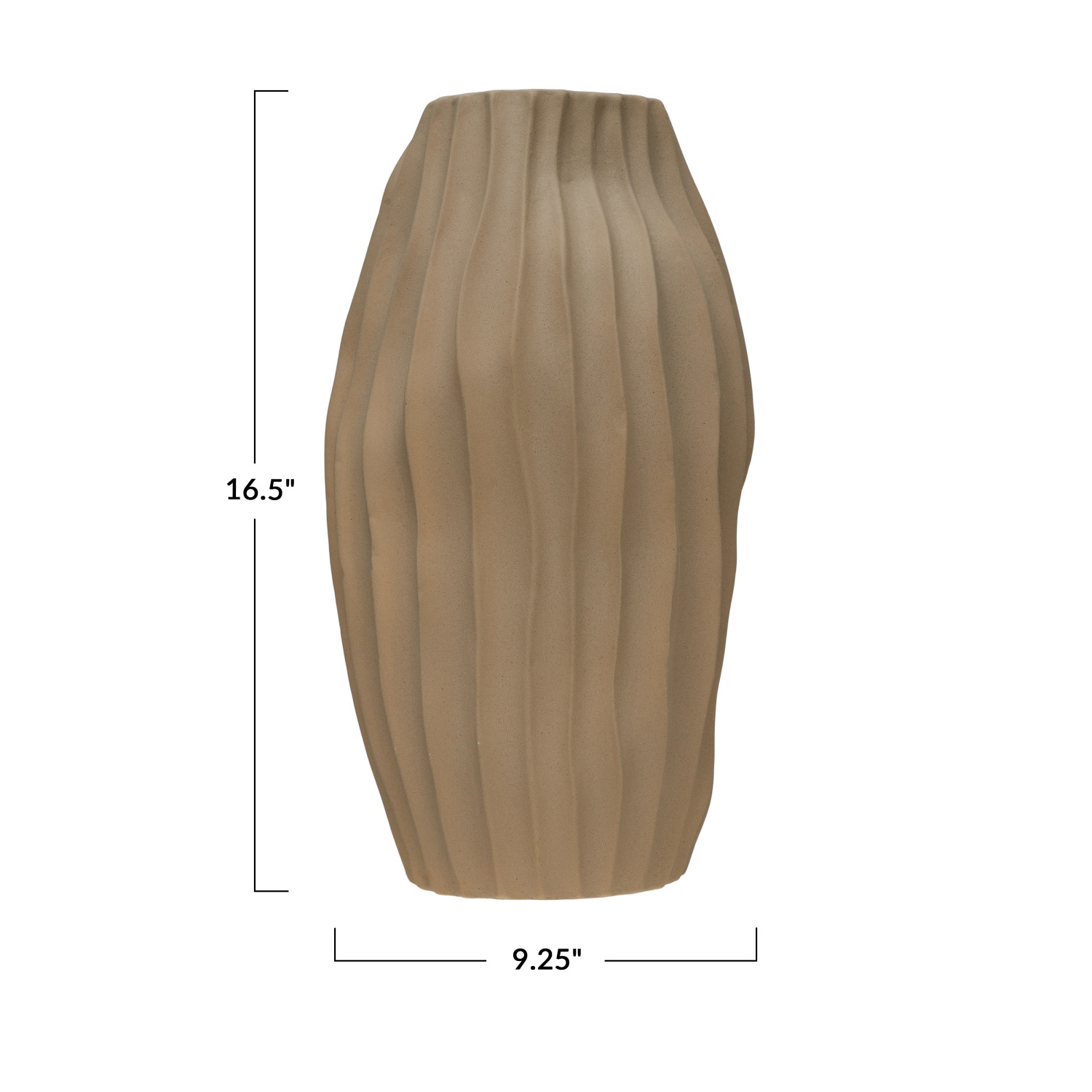 A stunning stoneware vase with an abstract fluted design and a sand finish that adds texture and warmth to any space. This vase is ideal for complementing a rustic, farmhouse, or coastal style home décor with its natural and earthy tones. Display this stylishly versatile vase as a sophisticated mantel accent or part of an inviting dining table centerpiece. Made of stoneware.