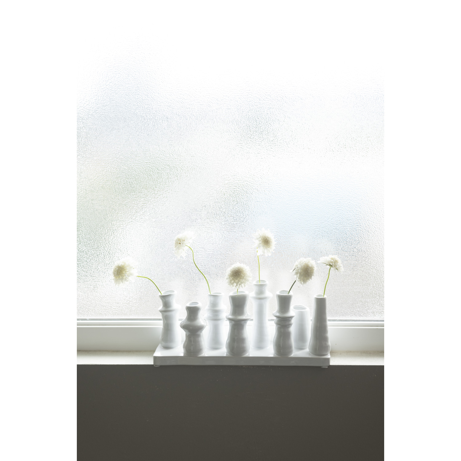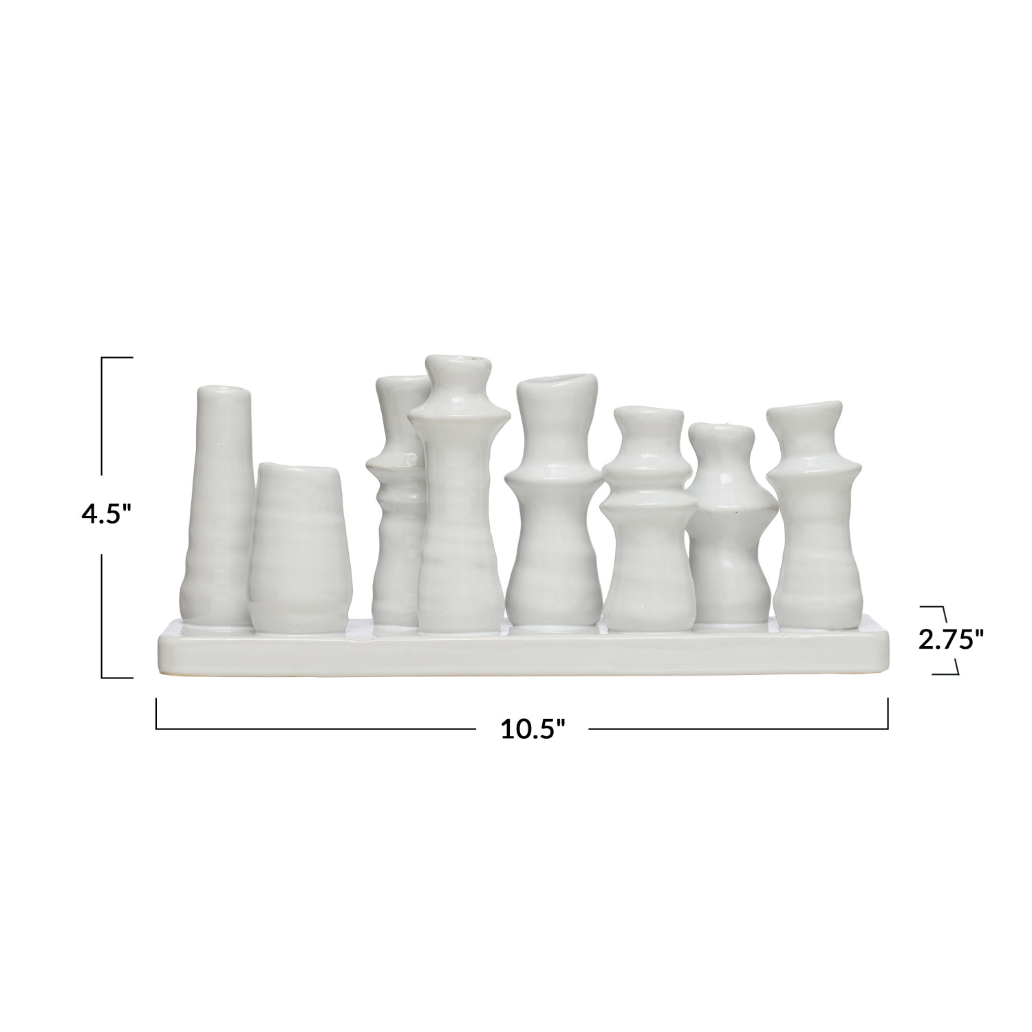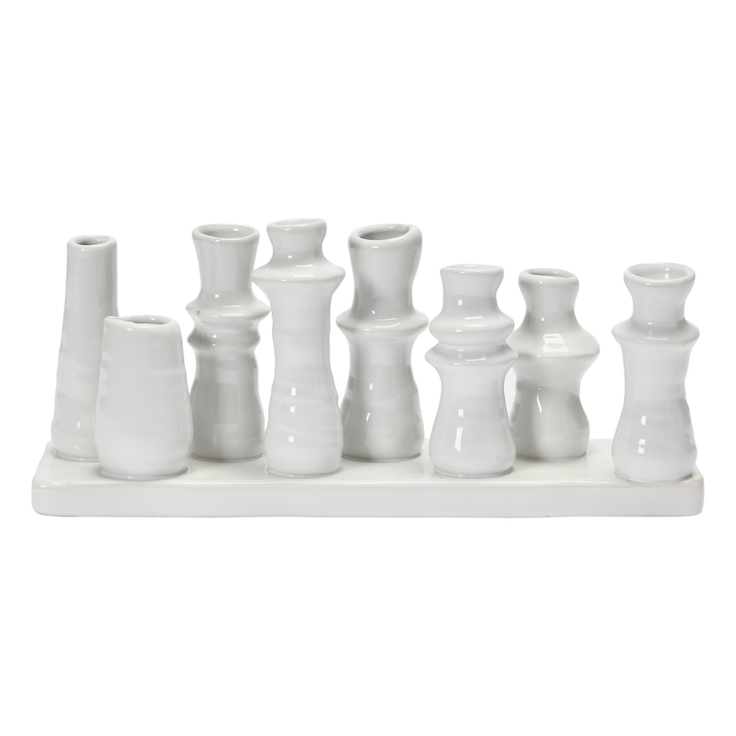 Catalog Name: 10-1/2"L x 2-3/4"W x 4-1/2"H Stoneware Multi Vase w/ 8 Vases, White