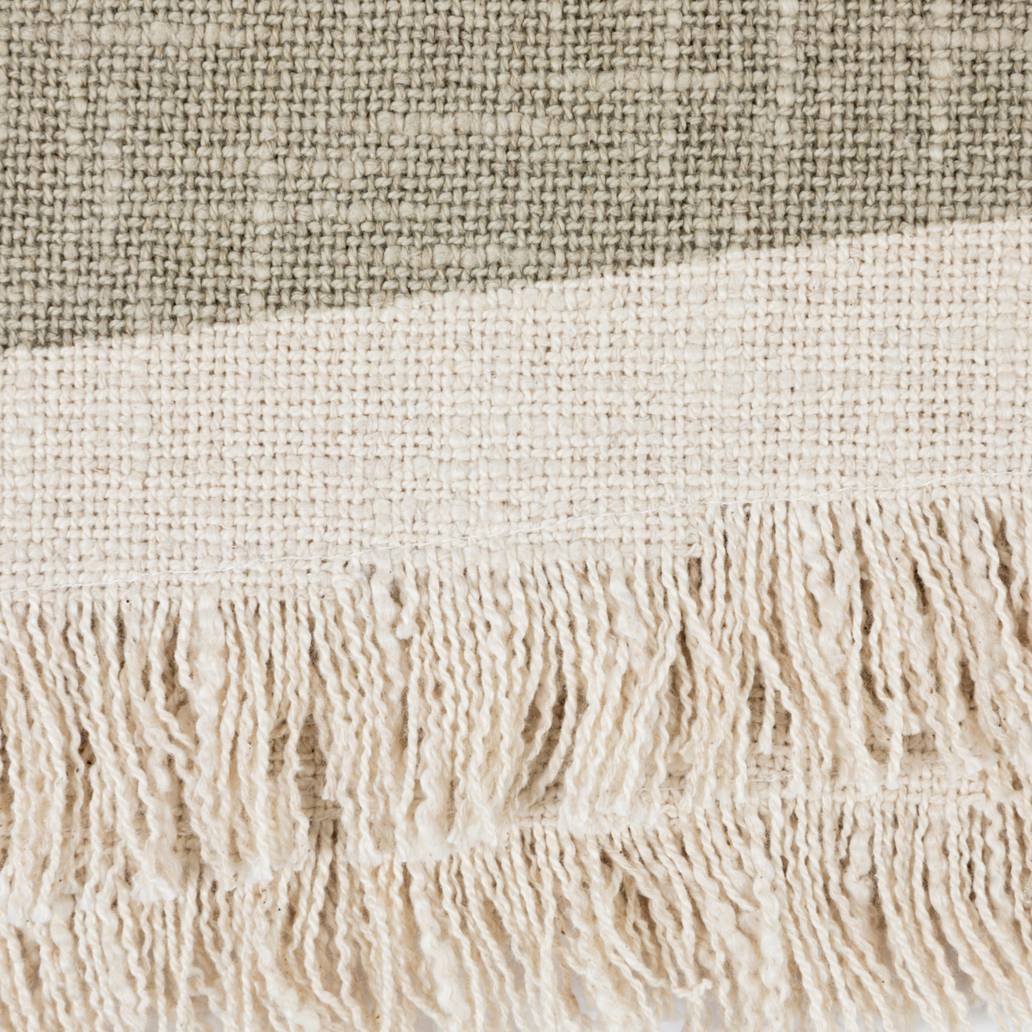 Catalog Name: 60"L x 50"W Cotton Slub Throw w/ Botanical Print & Fringe, Sage Color & Natural