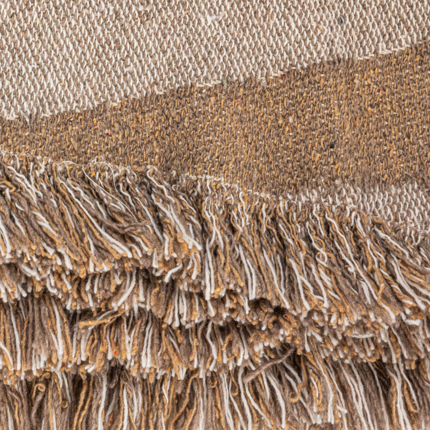 Add some comfort and style to the home with this woven reclaimed cotton blend throw in brown and beige. This throw has a woven texture and a wave design that gives it a dynamic and elegant look. The throw also has a brown and beige color scheme that creates a warm and neutral look. The throw can be used in different ways, either as a blanket or a decorative item. Wrap it to keep anyone warm and cozy, or drape it over the sofa, bed, chair, or bench to add some flair and interest. The throw can also blend with any decor style, from Scandinavian to boho, global to modern, or French country. It can create a cozy and inviting atmosphere in the living room, bedroom, or any other space. The throw is made of reclaimed cotton blend that is eco-friendly and soft. It is also easy to care for and durable. It also has a fringe detail on both ends that adds some texture and charm. This woven reclaimed cotton blend throw is a wonderful gift idea for anyone who loves cozy and stylish home accessories.