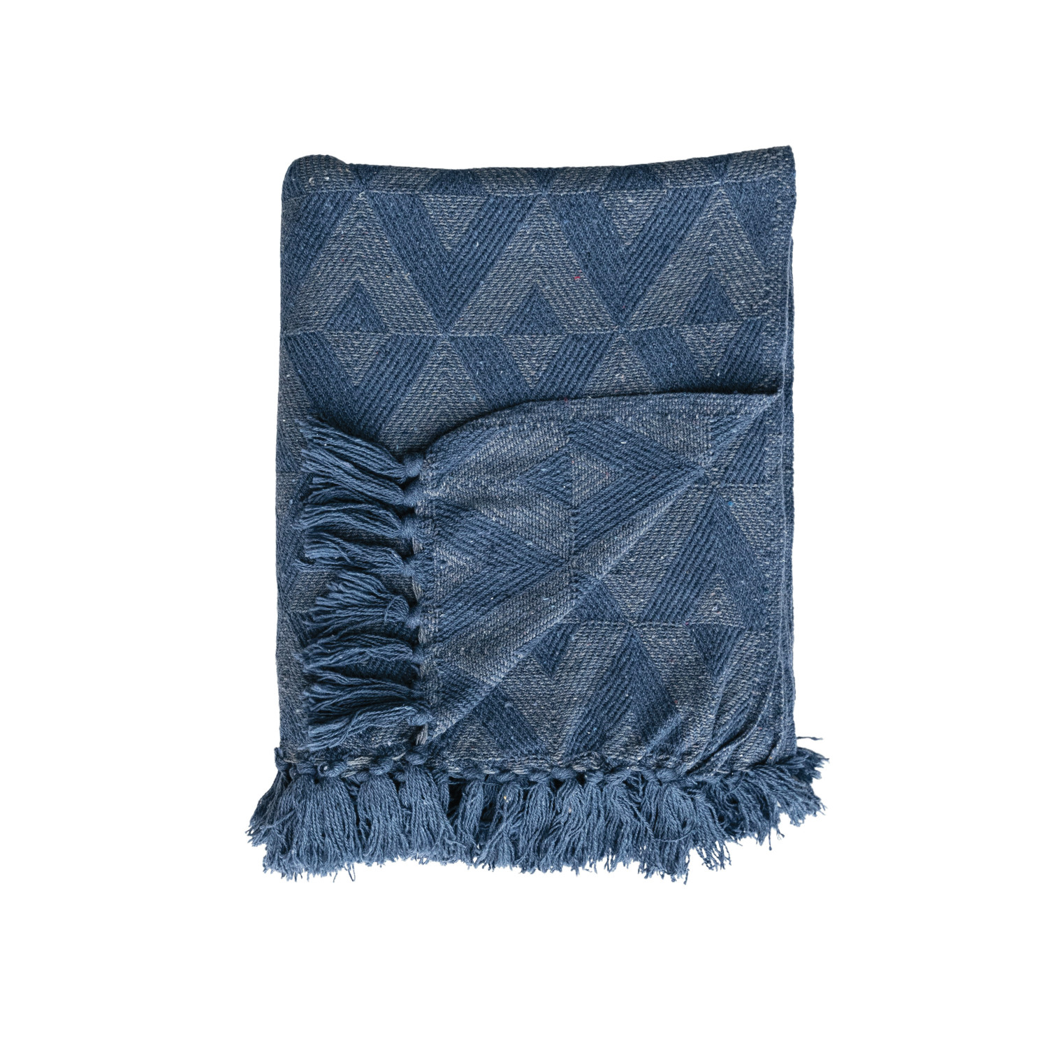 Catalog Name: 60"L x 50"W Woven Recycled Cotton Blend Throw w/ Triangle Pattern & Fringe, Blue