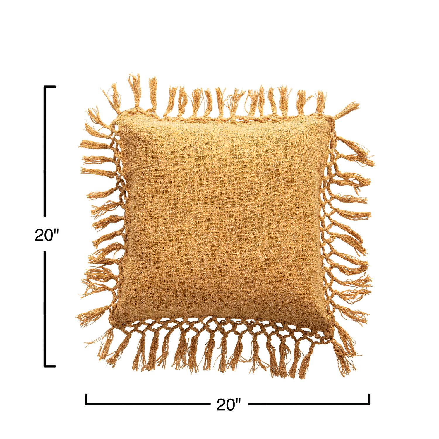 Catalog Name: 20" Square Cotton Slub Pillow w/ Crochet & Fringe, Mustard Color