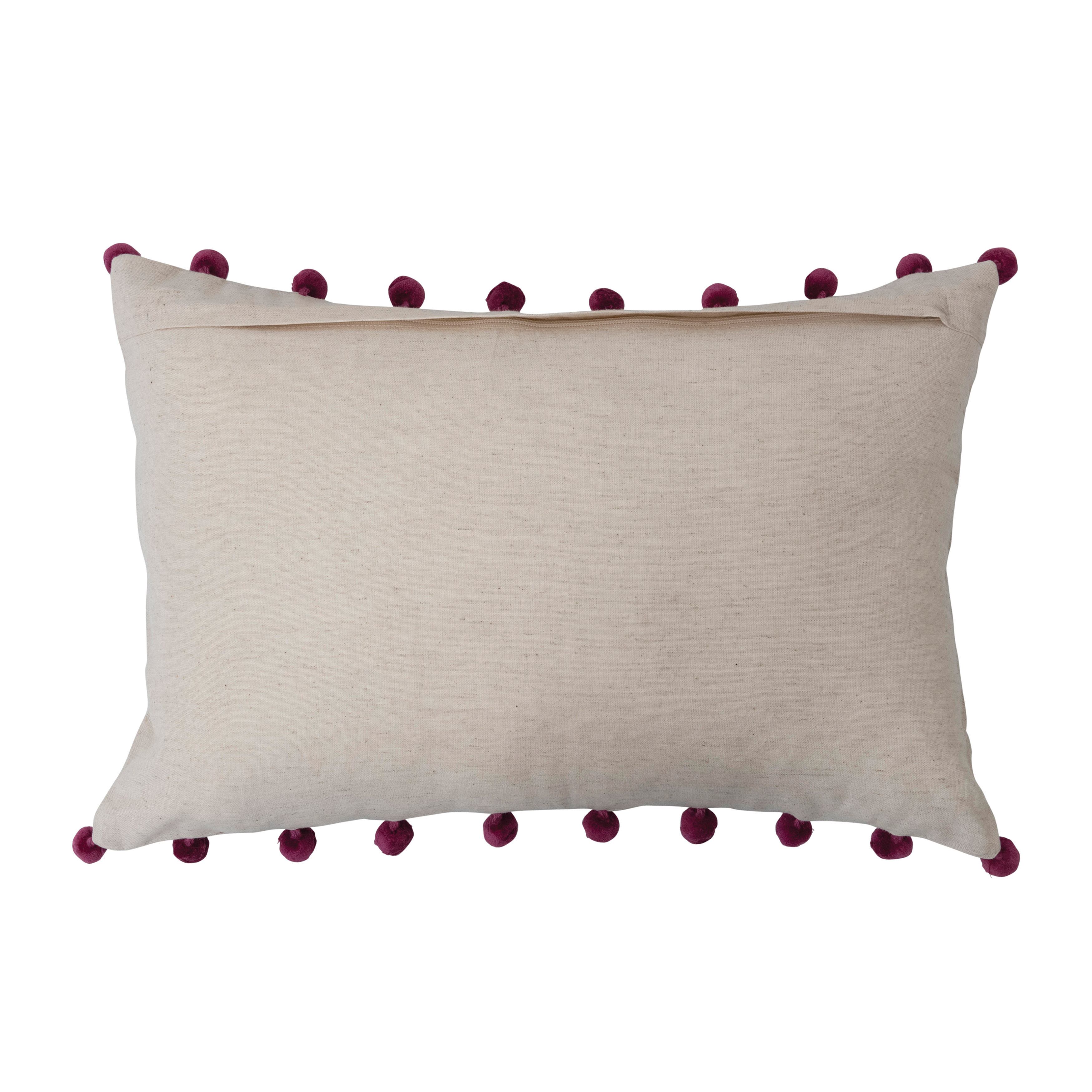 20" x 14" Cotton Linen Lumbar Pillow with Embroidery & Pom Poms