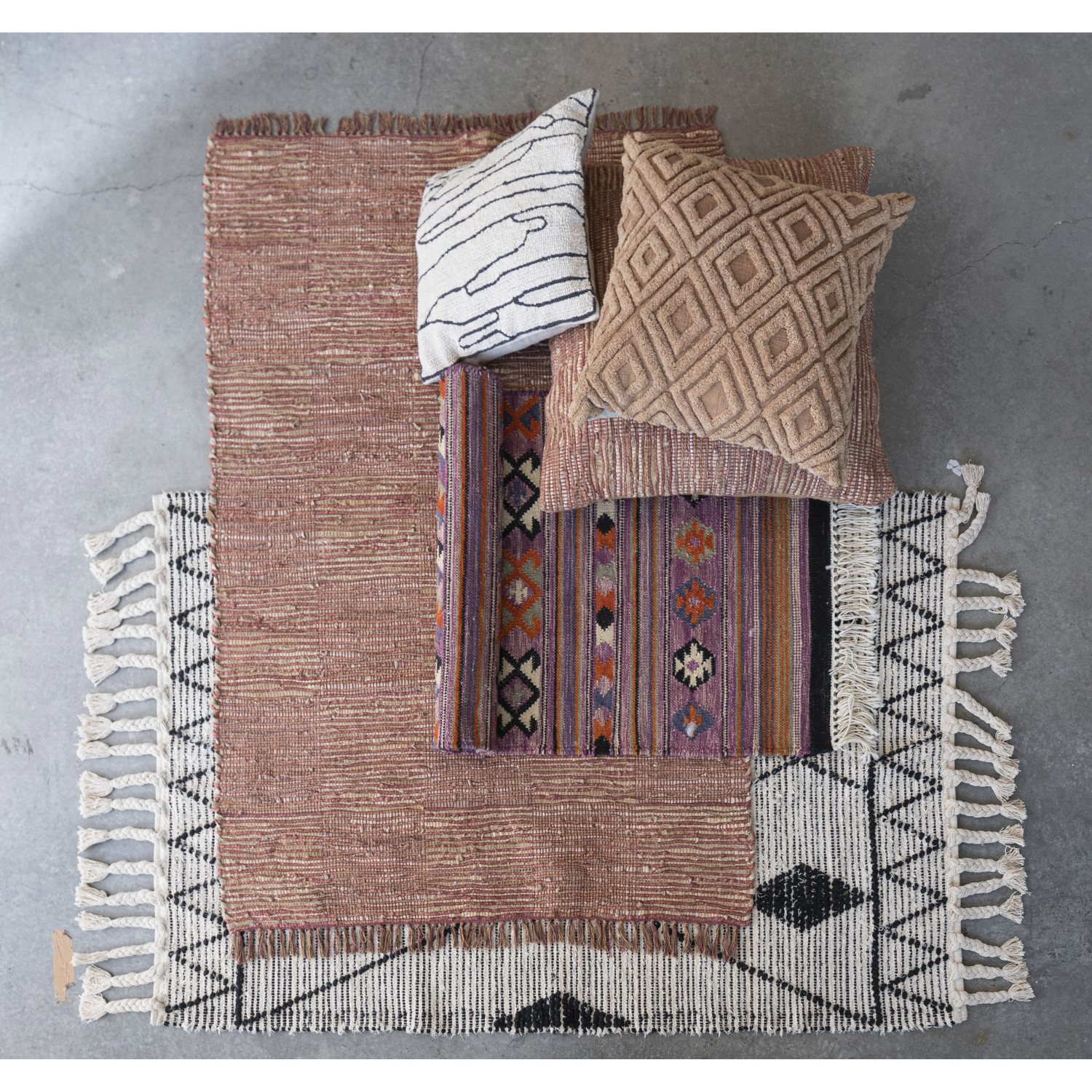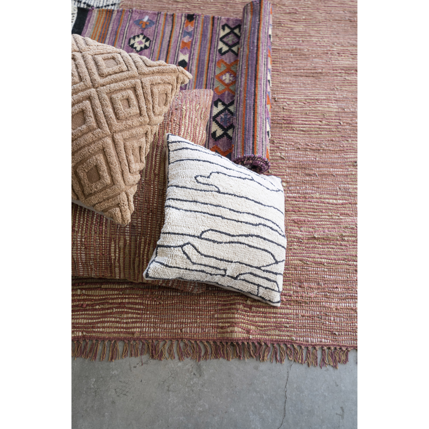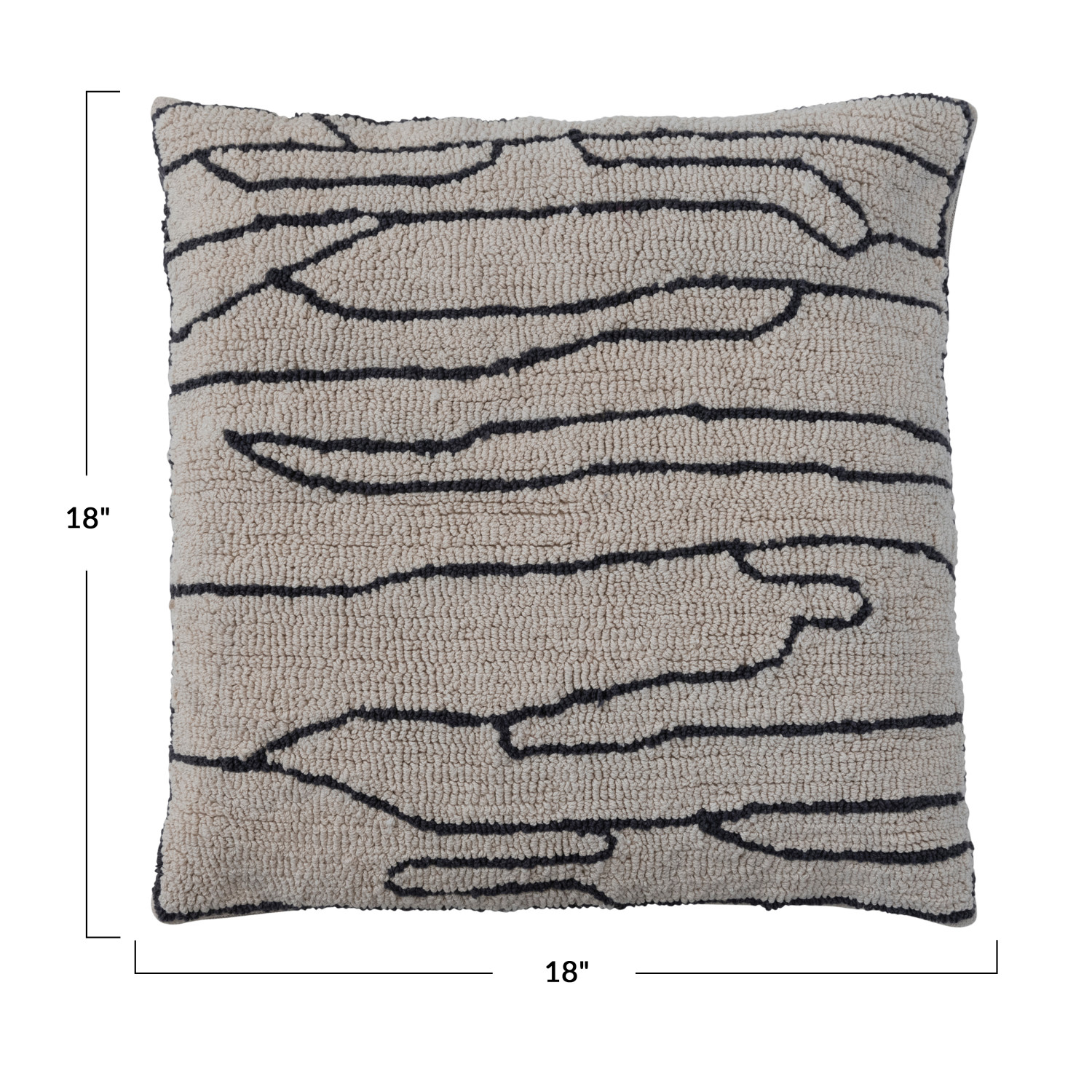 This contemporary throw pillow features supple, tufted cotton with an abstract line design. Includes polyfill insert. Machine Wash Warm Gentle Cycle, Do Not Bleach, Tumble Dry Low, Warm Iron If Needed, Trim Loose Threads After Washing or Hand Wash. Made from cotton and polyester.