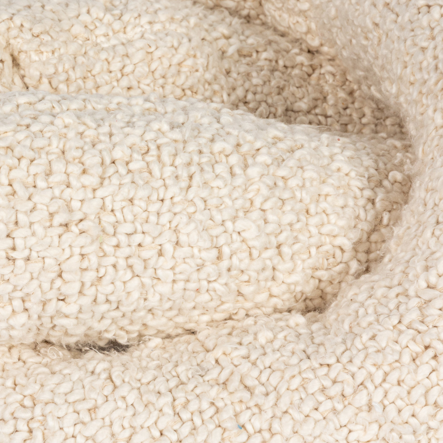 Enhance the home decor with this woven cotton bouclé knot pillow in cream. This pillow features a woven cotton bouclé fabric that creates a soft and cozy feel. The bouclé material is textured and curly, giving the pillow a unique and charming look. The cream color is neutral and elegant and can match any color scheme or theme. The pillow cover showcases an intricate knot design that creates a visually appealing and unique pattern that catches the eye. The knot design adds texture and elegance to the pillow, making it a statement piece in any room. The pillow cover has a sew closure. The pillow is made entirely of high-quality cotton material, which is durable, breathable, and gentle on the skin. The pillow cover and the fill are made of cotton bouclé, a natural and sustainable material that provides comfort and support.