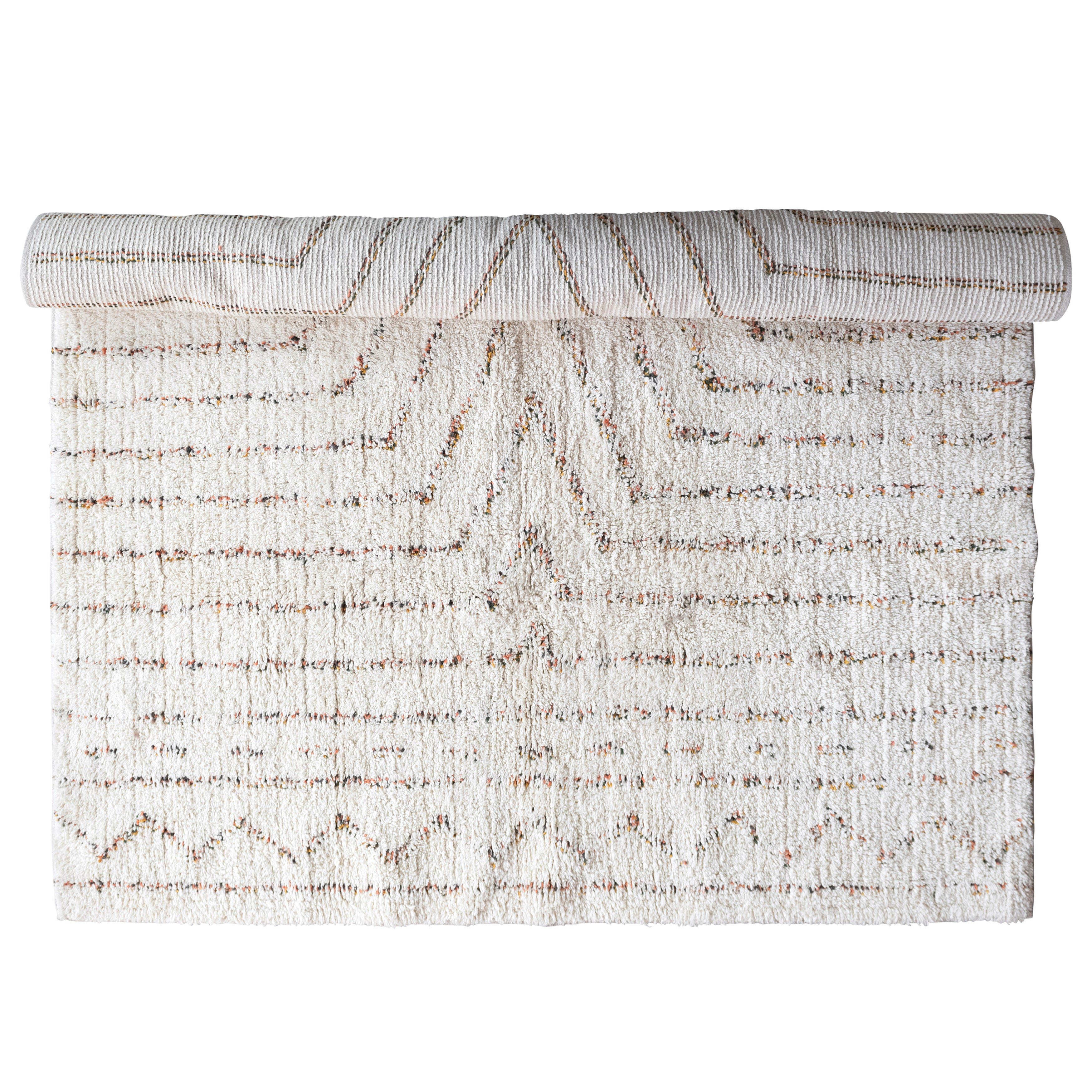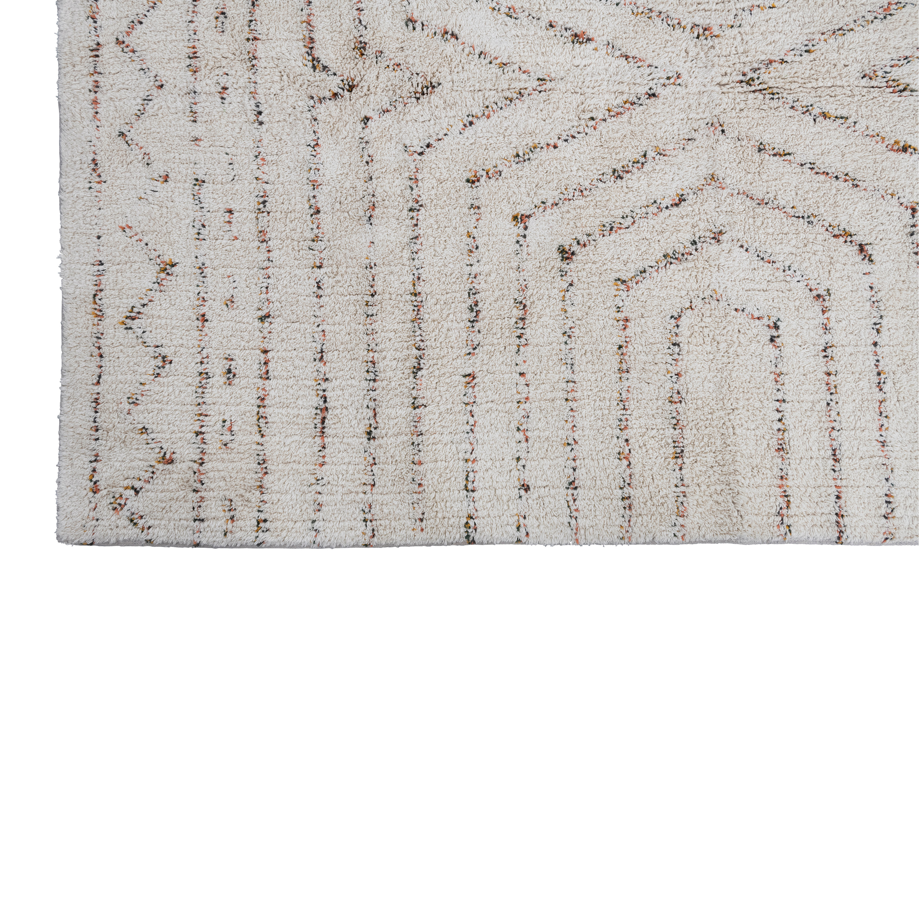 This modern boho rug features a stonewashed geometric print on soft tufted cotton. Multicolor stonewashed tufted cotton throw rug with geometric print. Spot Clean Only. 97% Cotton, 3% Other Fibers.