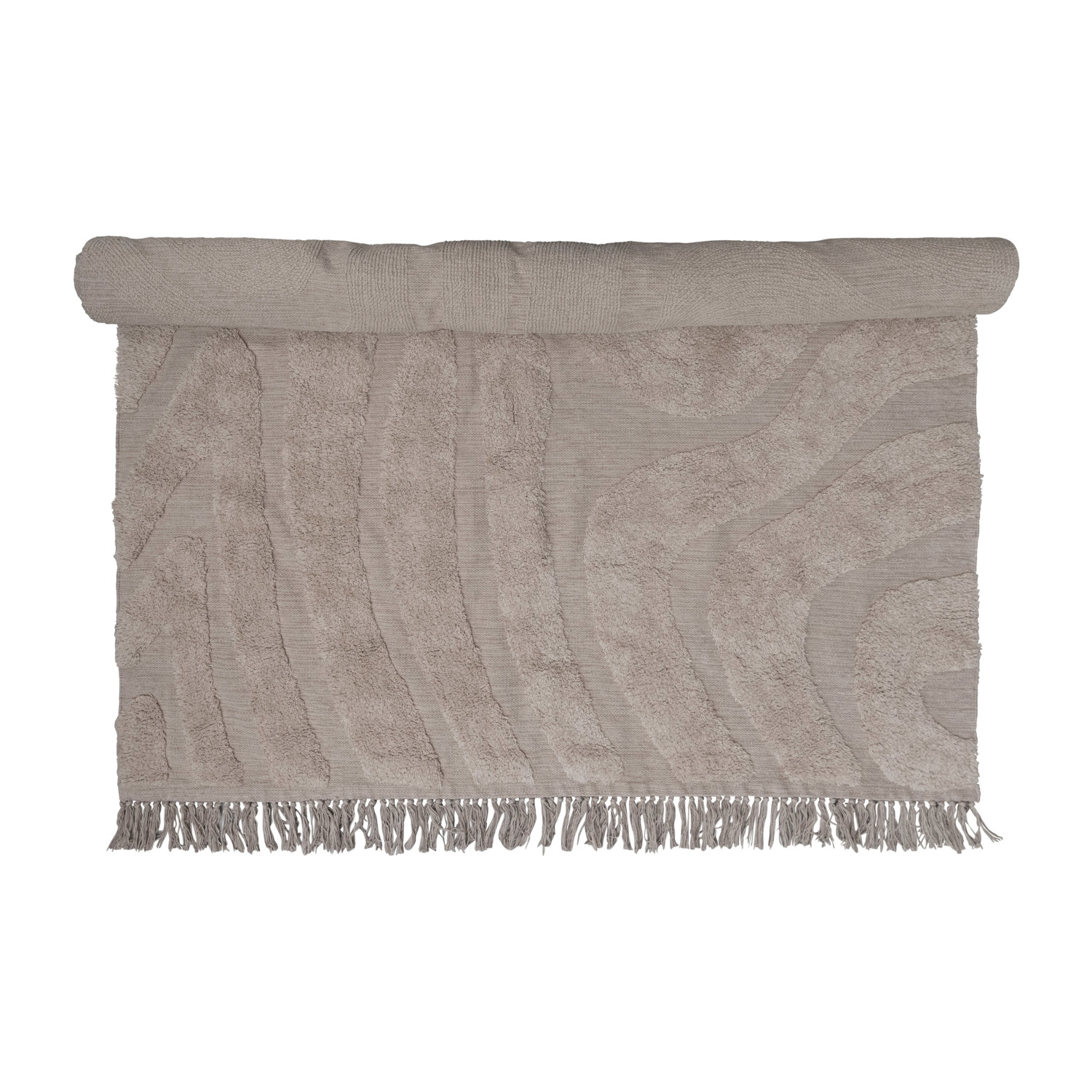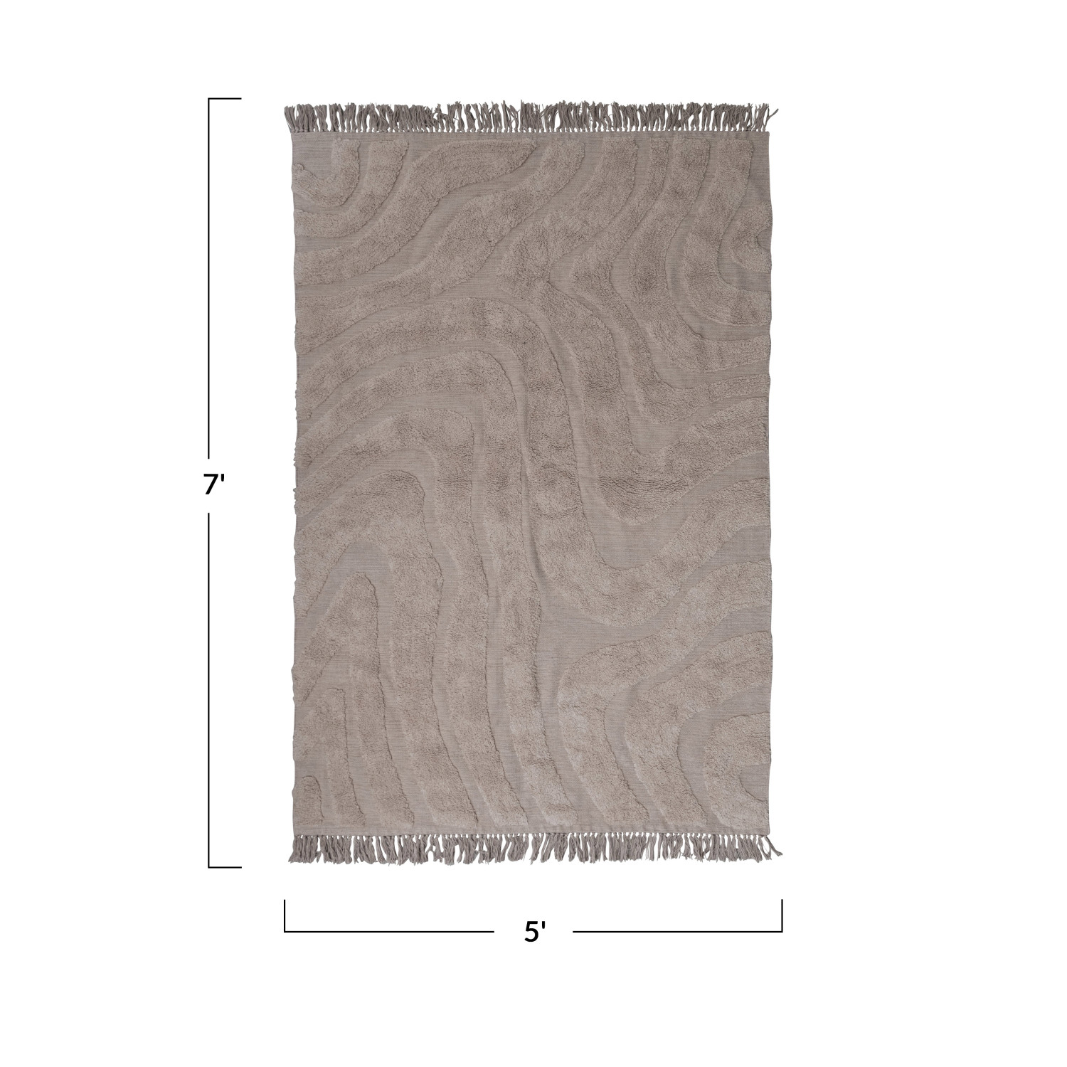 This nature inspired rug features supple melange cotton with a tufted wave design and decorative fringe.