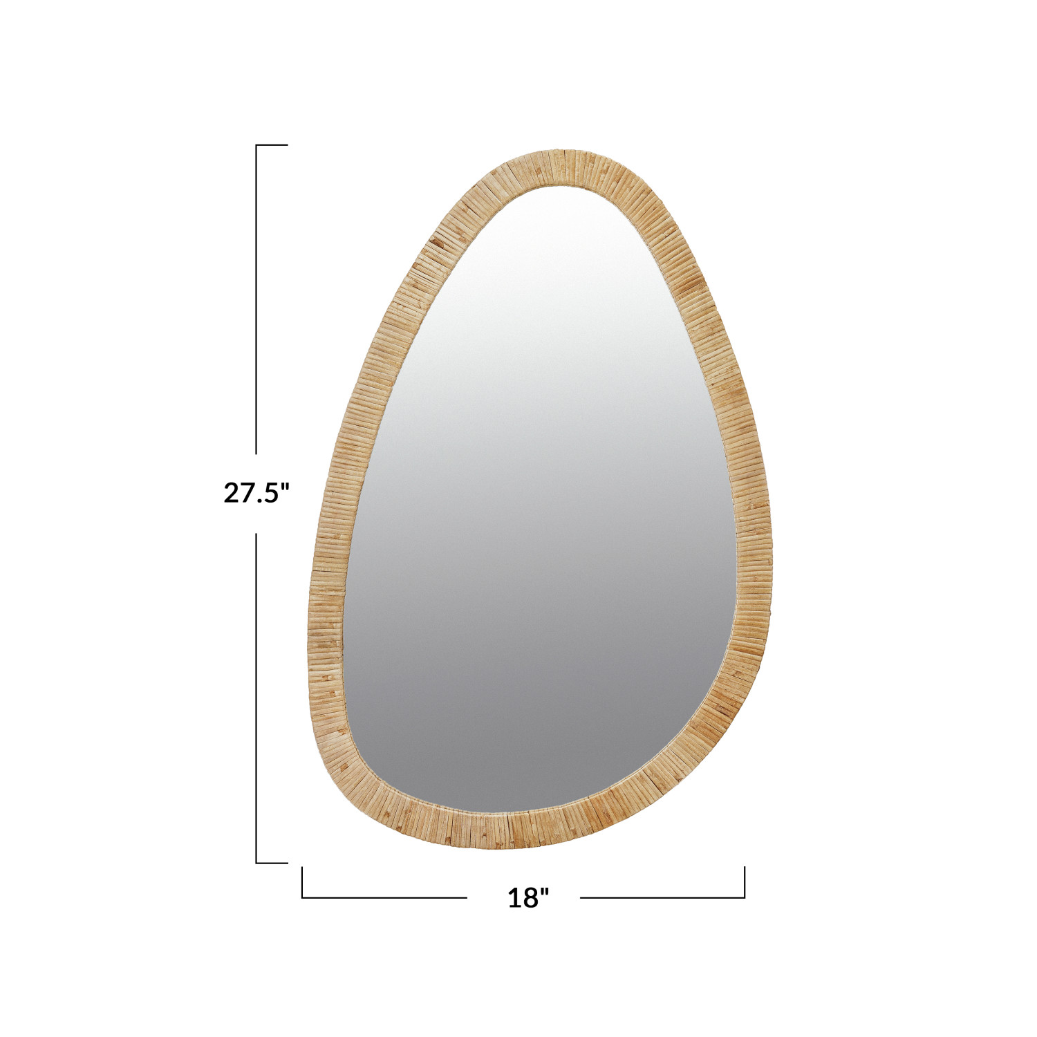 Catalog Name: 18"W x 27-1/2"H Rattan Wrapped Wood Framed Organic Shaped Wall Mirror, Natural, Truck Ship (Hangs Vertically & Horizontally)