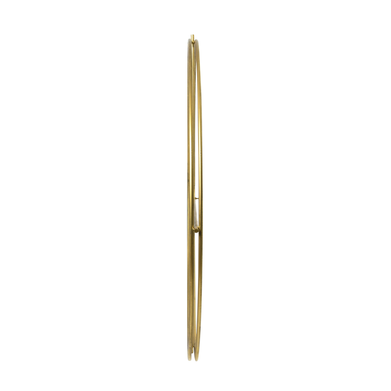 Simple lines create this gold metal wall clock. The open design allows the wall color to pier through the center making the wall and clock one. Be truly creative and place decorator paper or family photos in the space behind the clock making it a one of a kind piece.