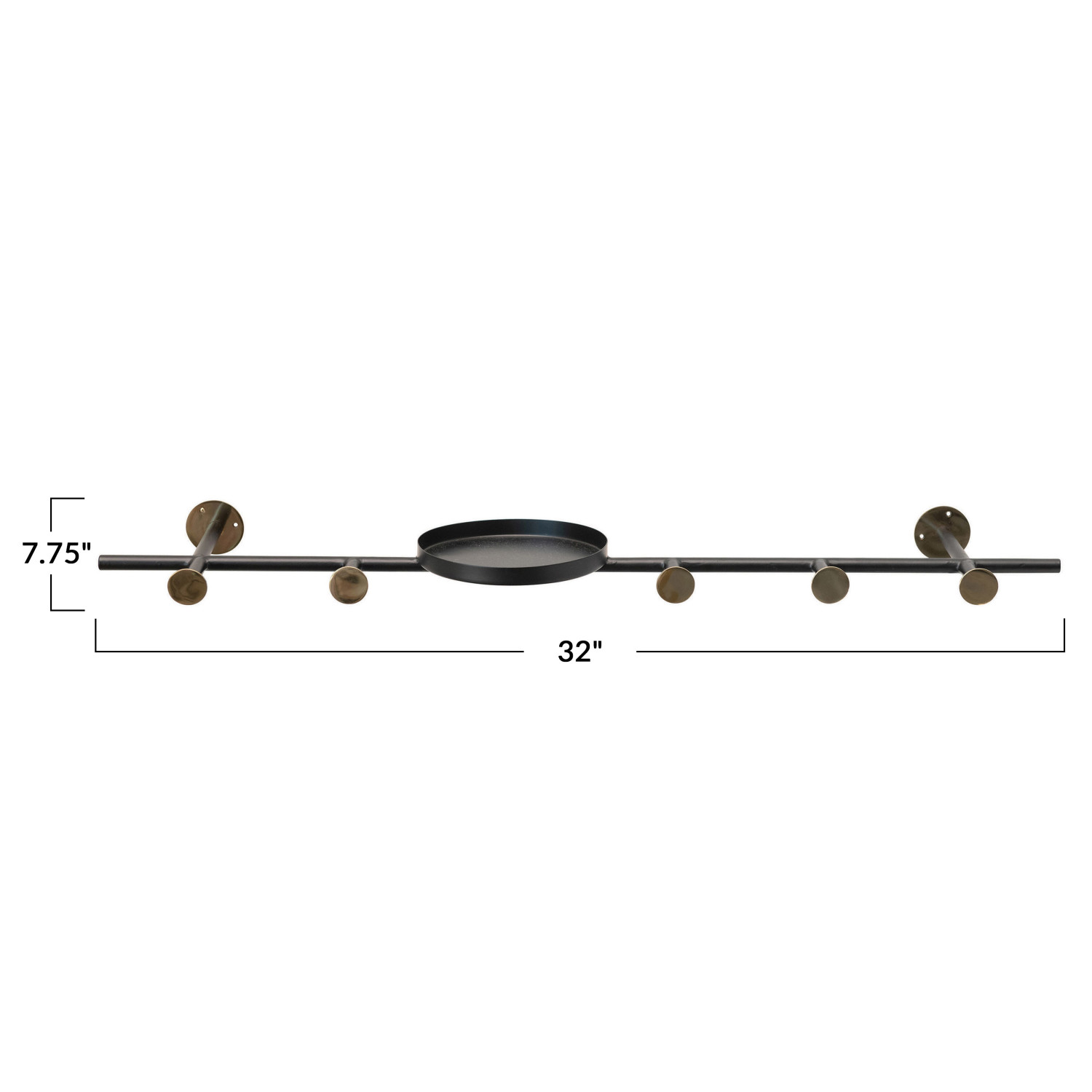 Catalog Name: 32"W x 7-3/4"D x 2"H Metal Wall Hook w/ 1 Shelf & 5 Hooks, Brass Finish, Black
