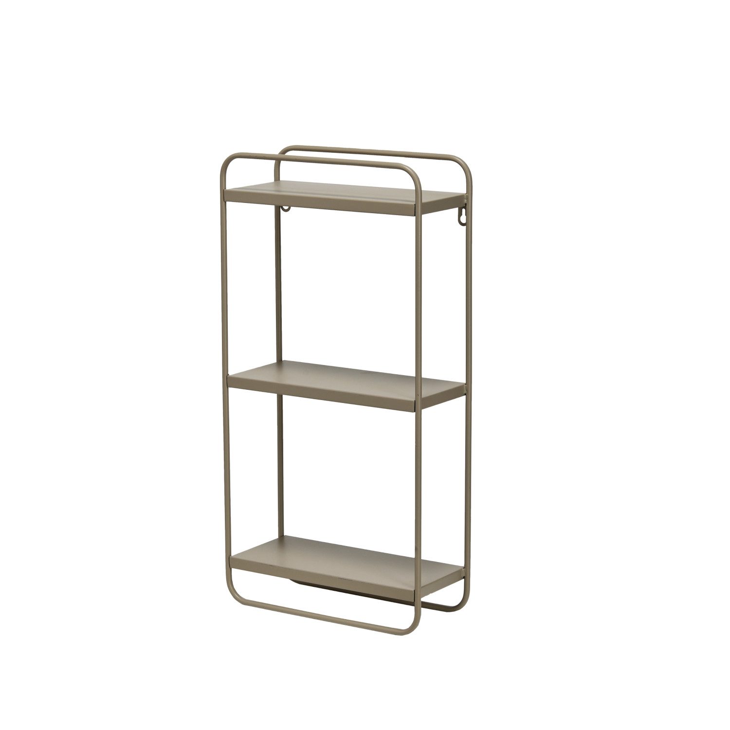 Elevate the walls with this chic Metal Wall Shelf, boasting a luxurious matte nude finish. Three generously sized shelves, perfectly spaced for highlighting decorative items, toiletries, or novels, offer both style and functionality. Crafted from sturdy metal for lasting durability, this shelf arrives fully assembled, ready to add a touch of sophisticated elegance to any space. Measuring 12 inches long, 5 inches wide, and 24 inches high, its versatility allows it to seamlessly blend with modern or minimalist interiors. Hang it in the living room to display artwork and photos, utilize it in the bathroom for neatly organized toiletries, or let it grace the entryway with a welcoming display. This versatile shelf is the perfect finishing touch to add a touch of modern organization and understated luxury to any room.
