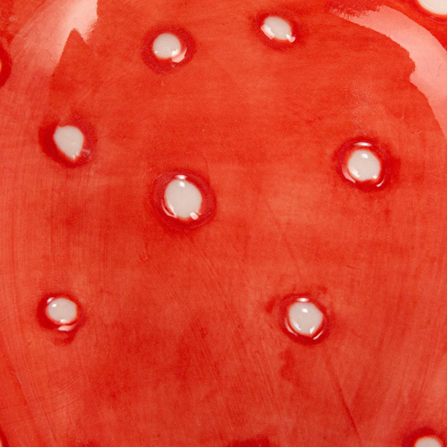 Catalog Name: 1, 3/4, 1/2 & 1/4 Cup Hand-Painted Stoneware Strawberry Shaped Measuring Cups, Red, Green & White, Set of 4