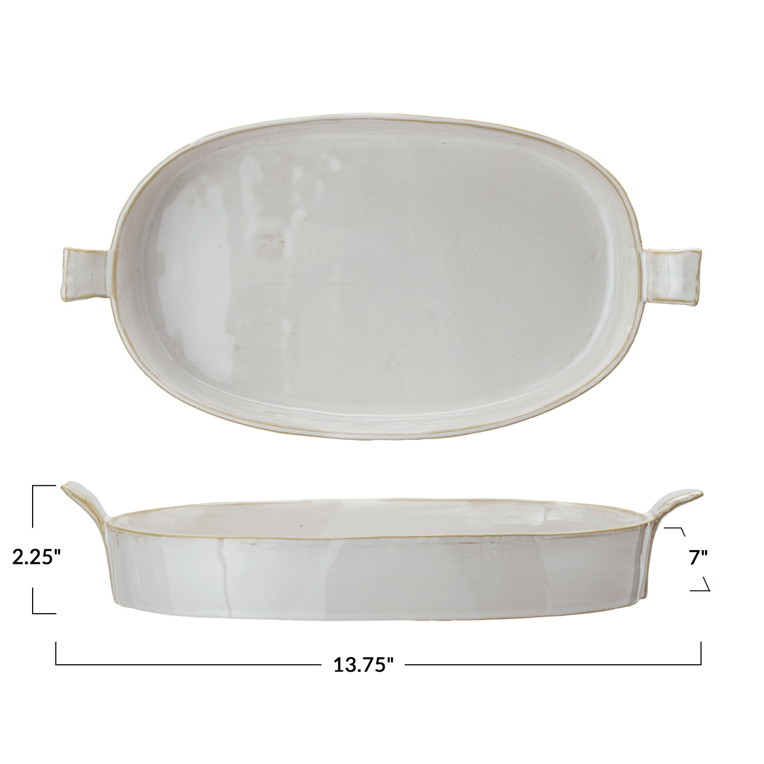Catalog Name: 13-3/4"L x 7"W x 2-1/4"H 1-1/2 Quart Stoneware Baker w/ Handles, Reactive Glaze, White (Each One Will Vary)