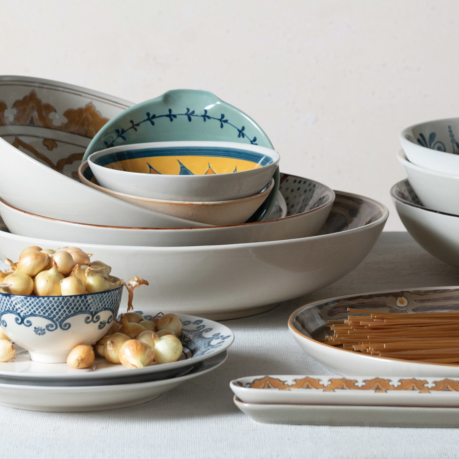 This classically designed stoneware bowl features a hand stamped design.