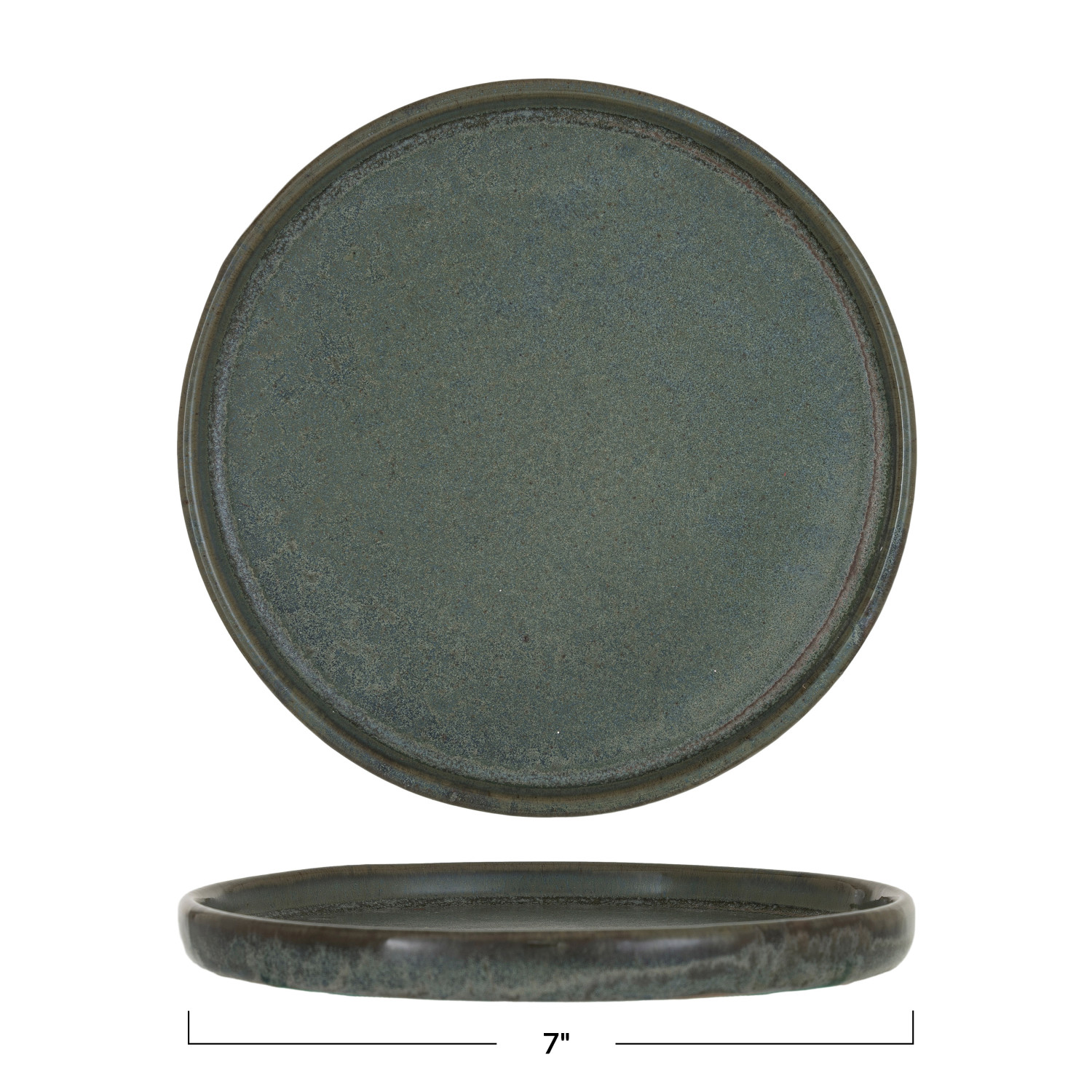 Catalog Name: 7" Round Stoneware Plate, Reactive Glaze, Matte Teal (Each One Will Vary)