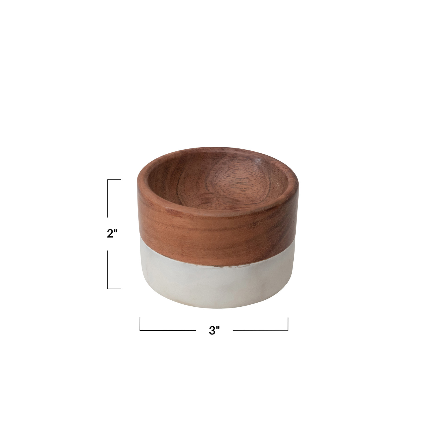 Catalog Name: 3" Round x 2"H Marble & Acacia Wood Pinch Pot, White & Natural