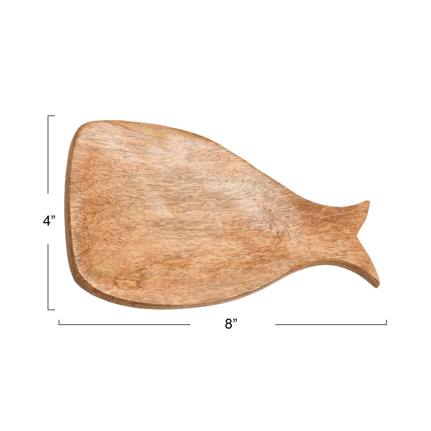 Catalog Name: 8"L x 4-1/4"W Mango Wood Whale Shaped Spoon Rest, Natural