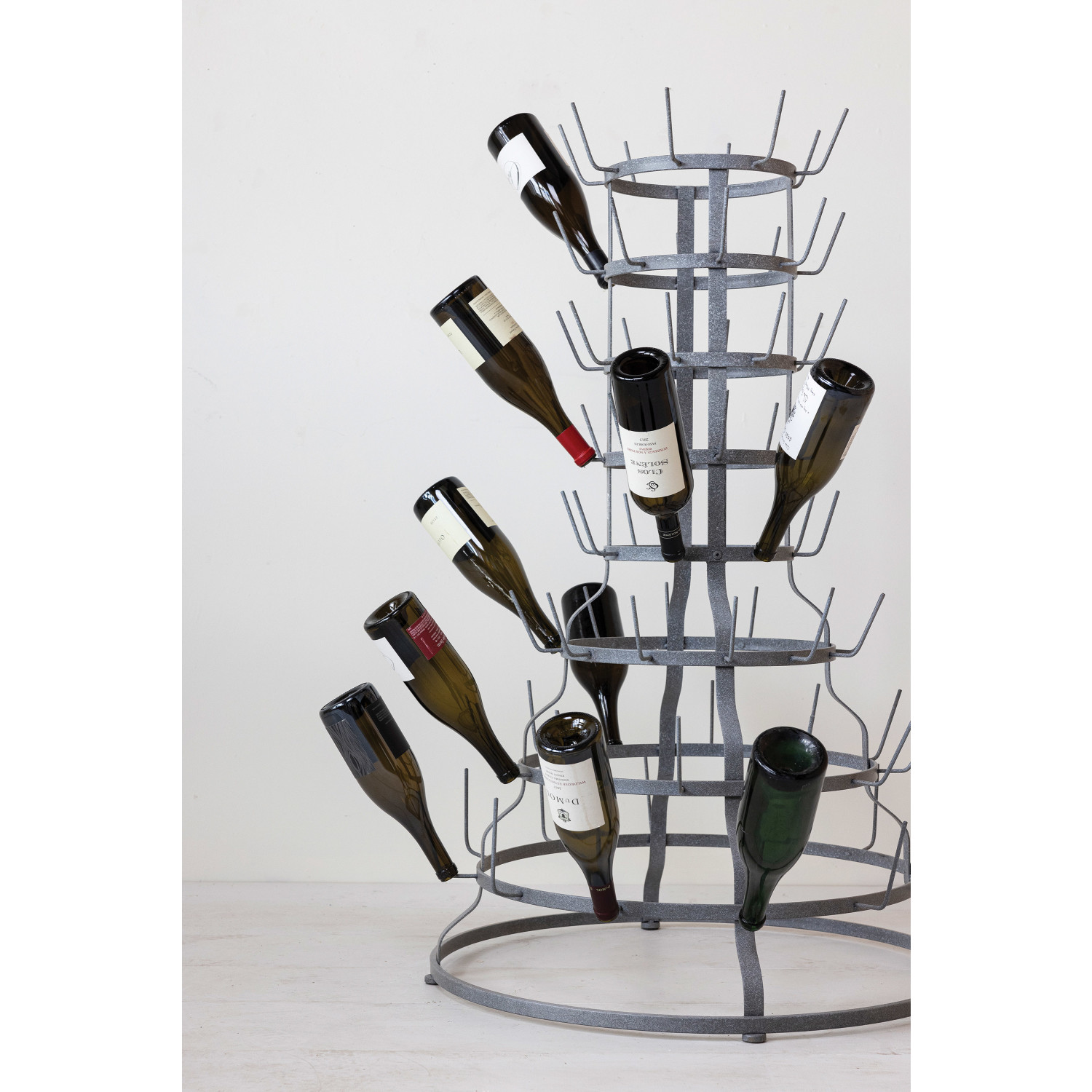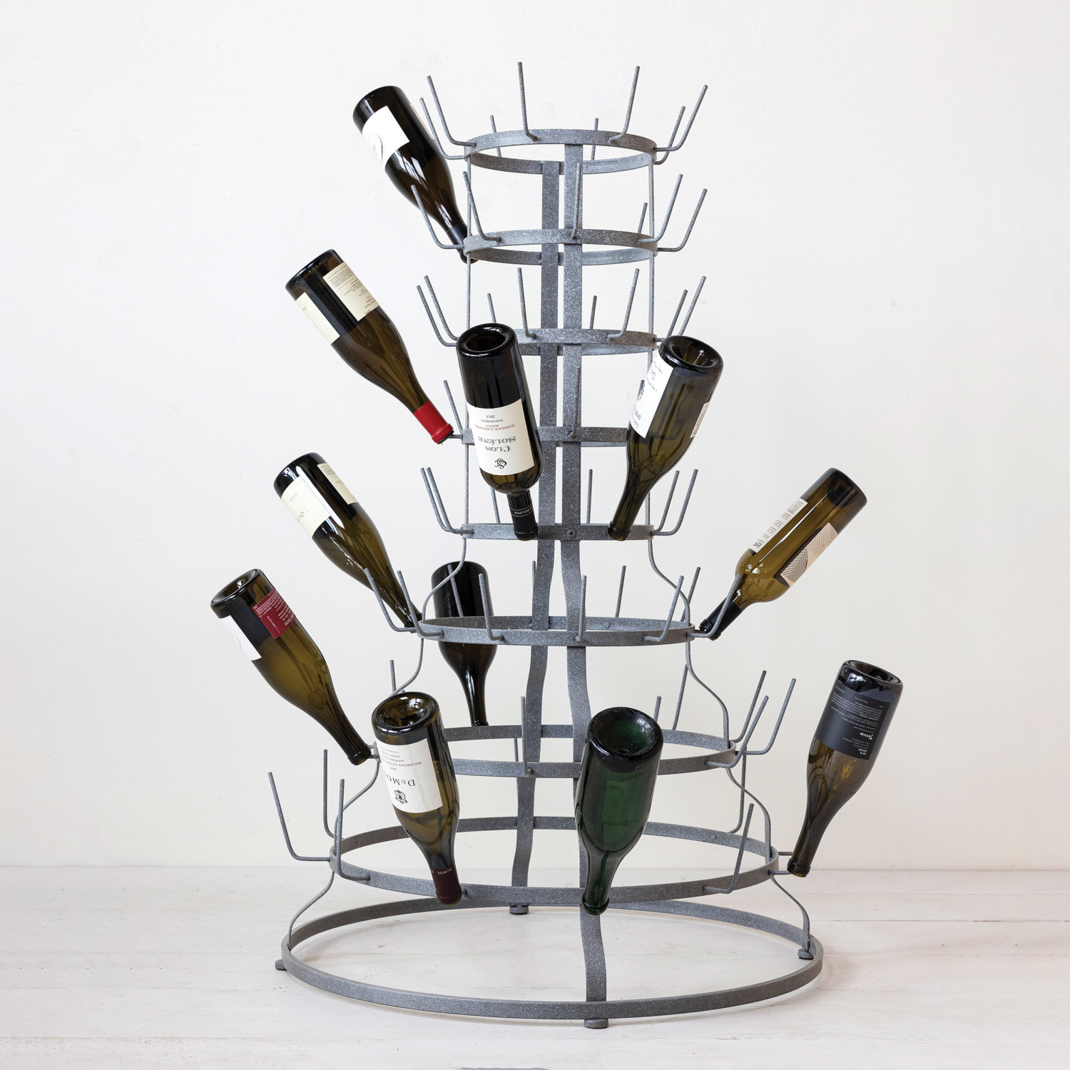 Catalog Name: 32-1/4" Round x 48-1/4"H Metal Vintage Reproduction Bottle Drying Rack w/ 76 Pegs, Distressed Zinc Finish, KD, Truck Ship