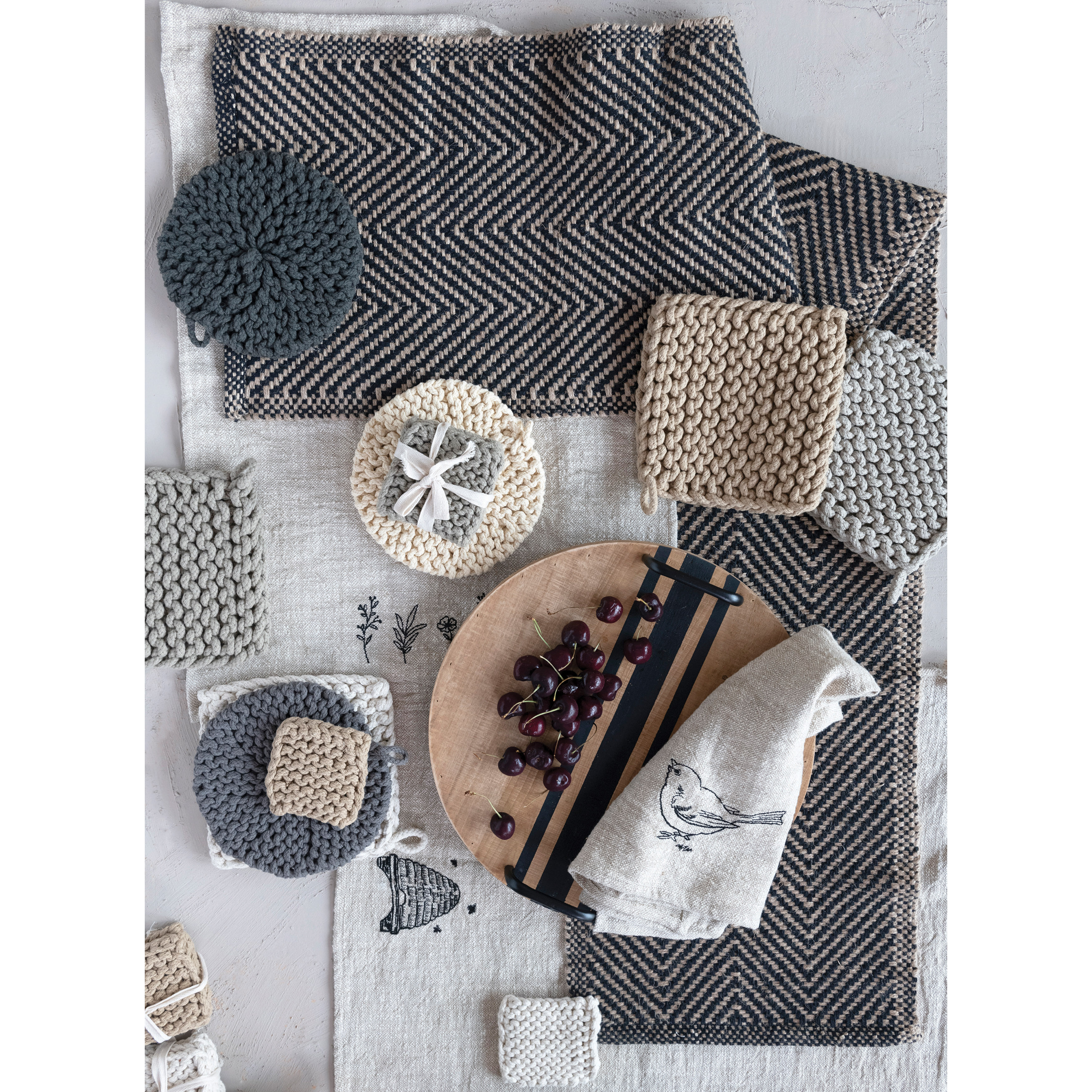 Cotton Crocheted Pot Holder, 3 Colors