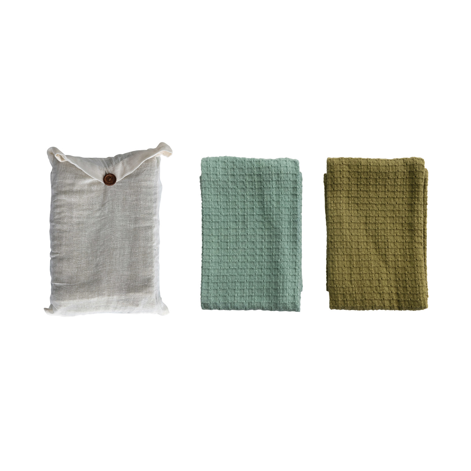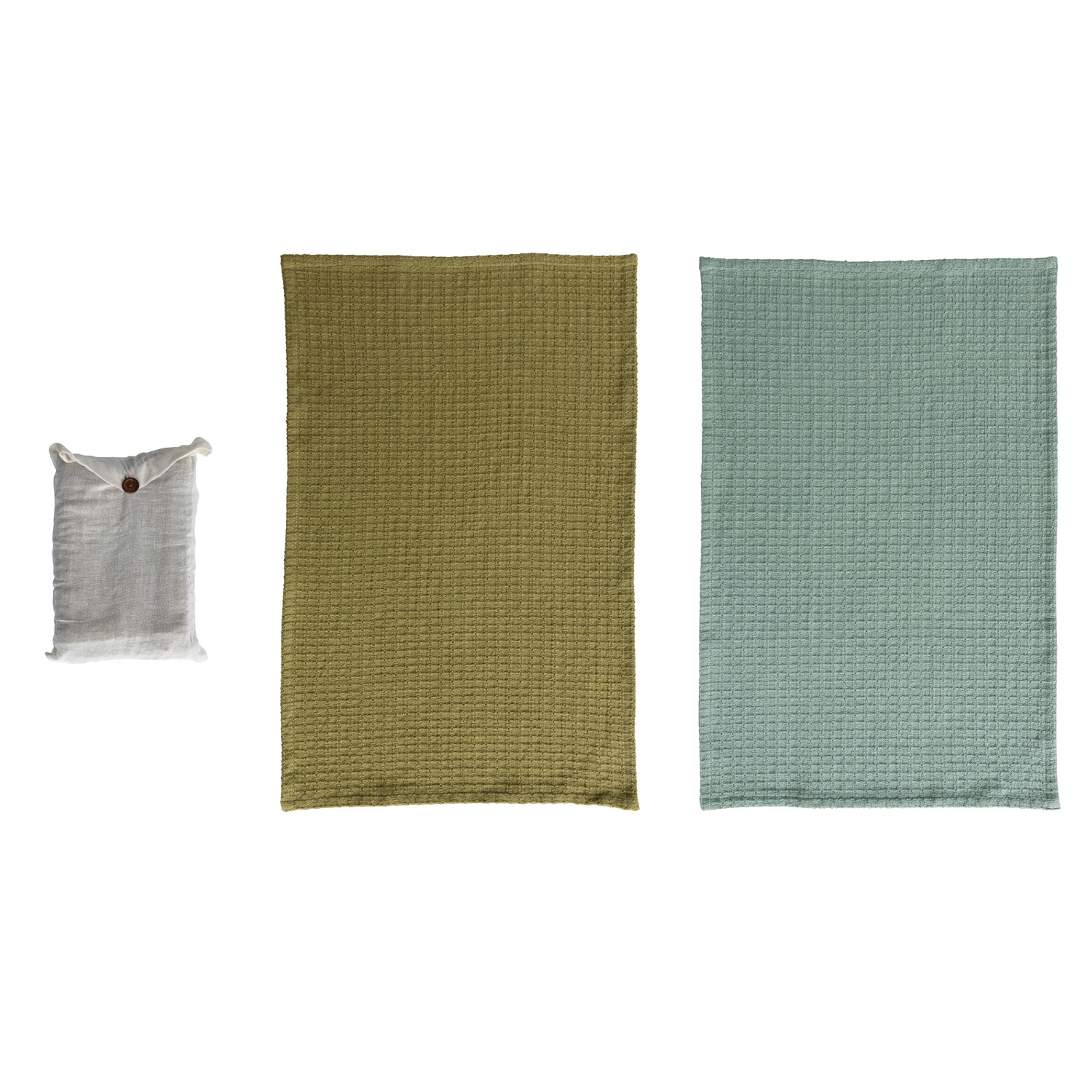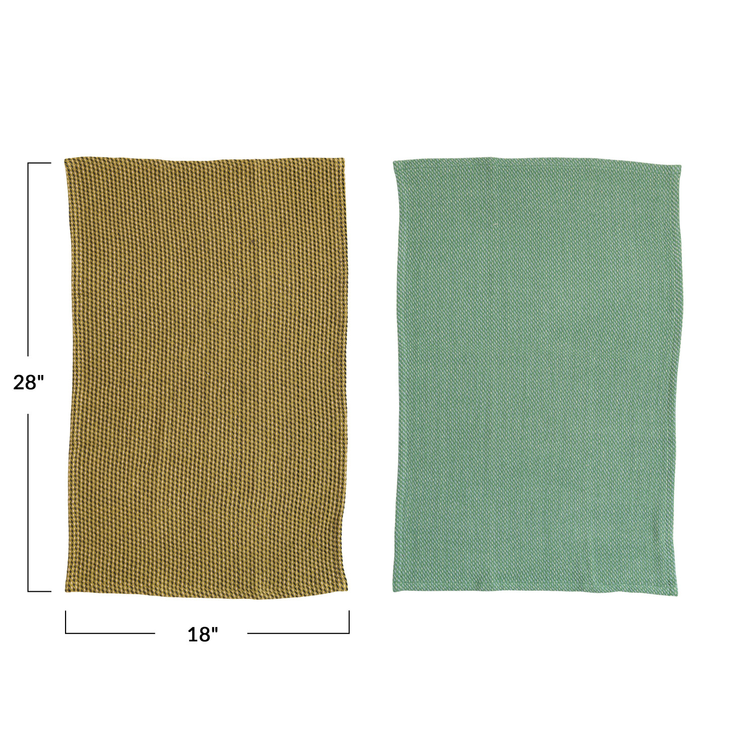 Catalog Name: 28"L x 18"W Cotton Waffle Weave Tea Towels, Teal & Olive Color, Set of 2 in Cotton Bag