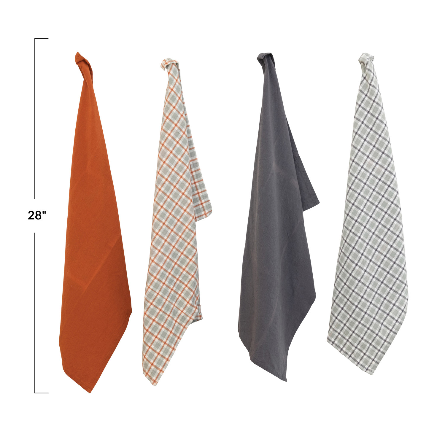 Catalog Name: 28"L x 18"W Cotton Tea Towels, Multi Color, Set of 4 Tied w/ Cotton Tape